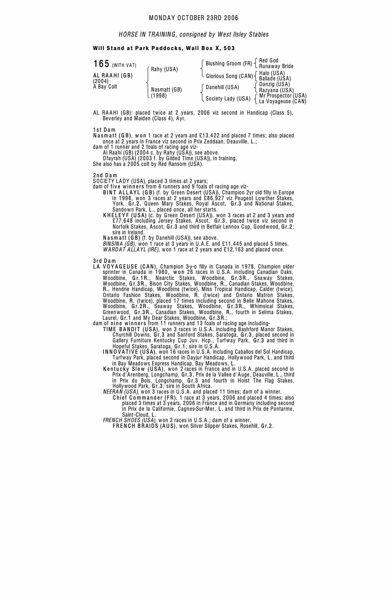 July Sale 2006 lot 150 Ofayrah (USA) (F. by Gilded Time (USA)), Darley=>Hyperion Bloodstock 7,000 gns