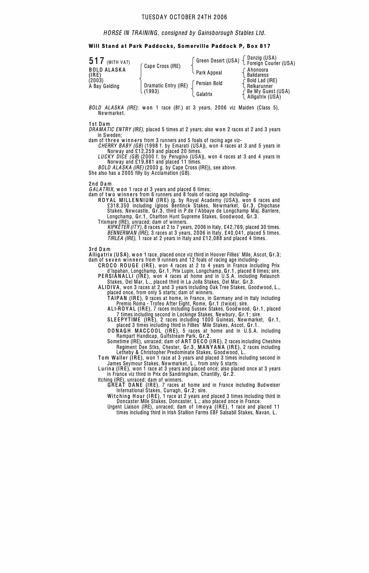 October Yearling Sale, Book 2 2006 lot 1314 F. by Acclamation (GB) 2005, Sillott Hill Stud Farm, Ireland=>CF Wall 24,000 gns