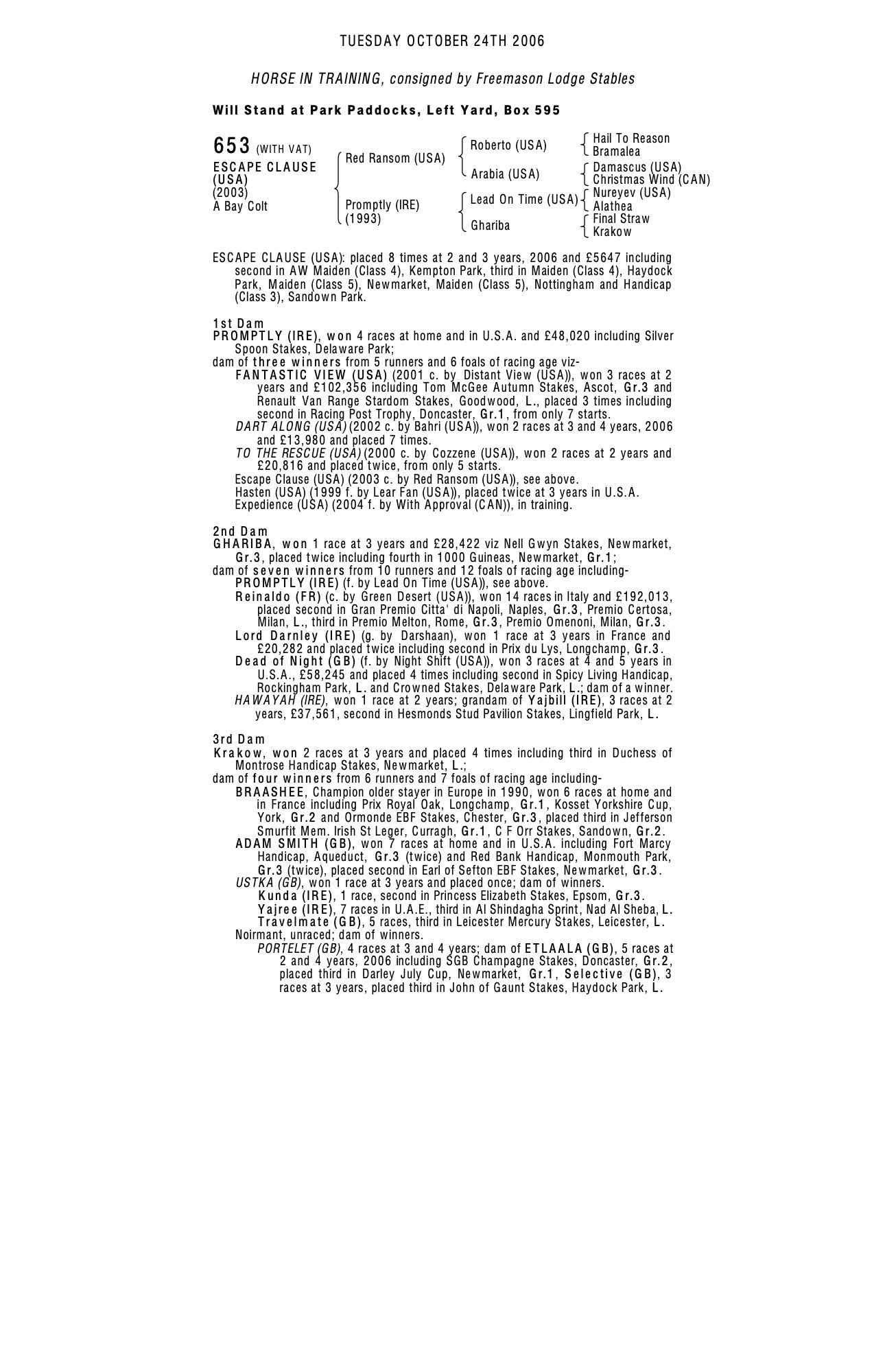 Autumn Horses in Training Sale 2009 lot 821 Weald Park (USA) (G. by Cozzene (USA)), East Everleigh Stables (R. Hannon)=>Lot Not Sold 28,000 gns