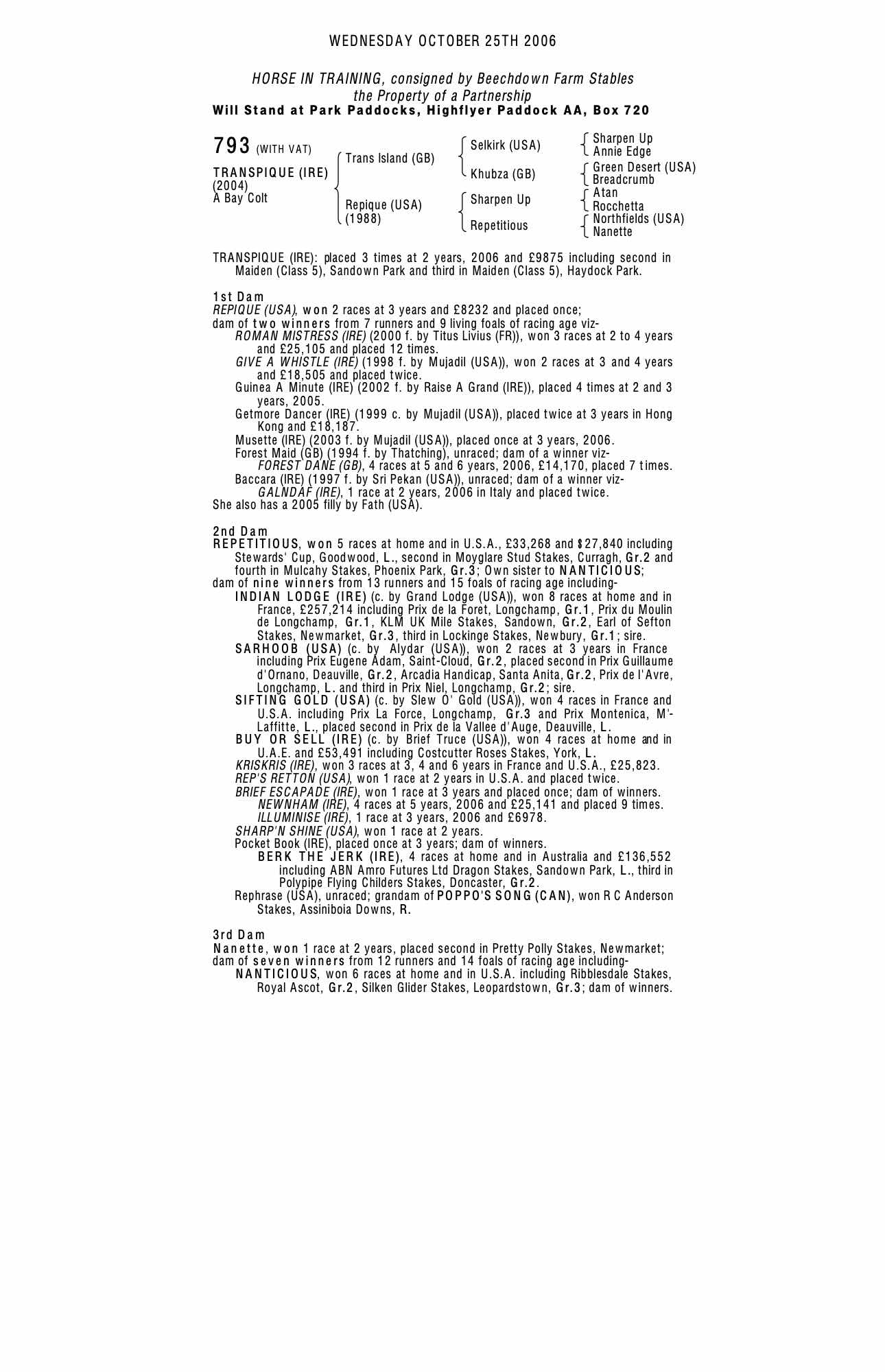 December Flat Sale 2006 lot 188 F. by Fath (USA) 2005, Honeypig Stud=>Fattheen House Stud €3,500
