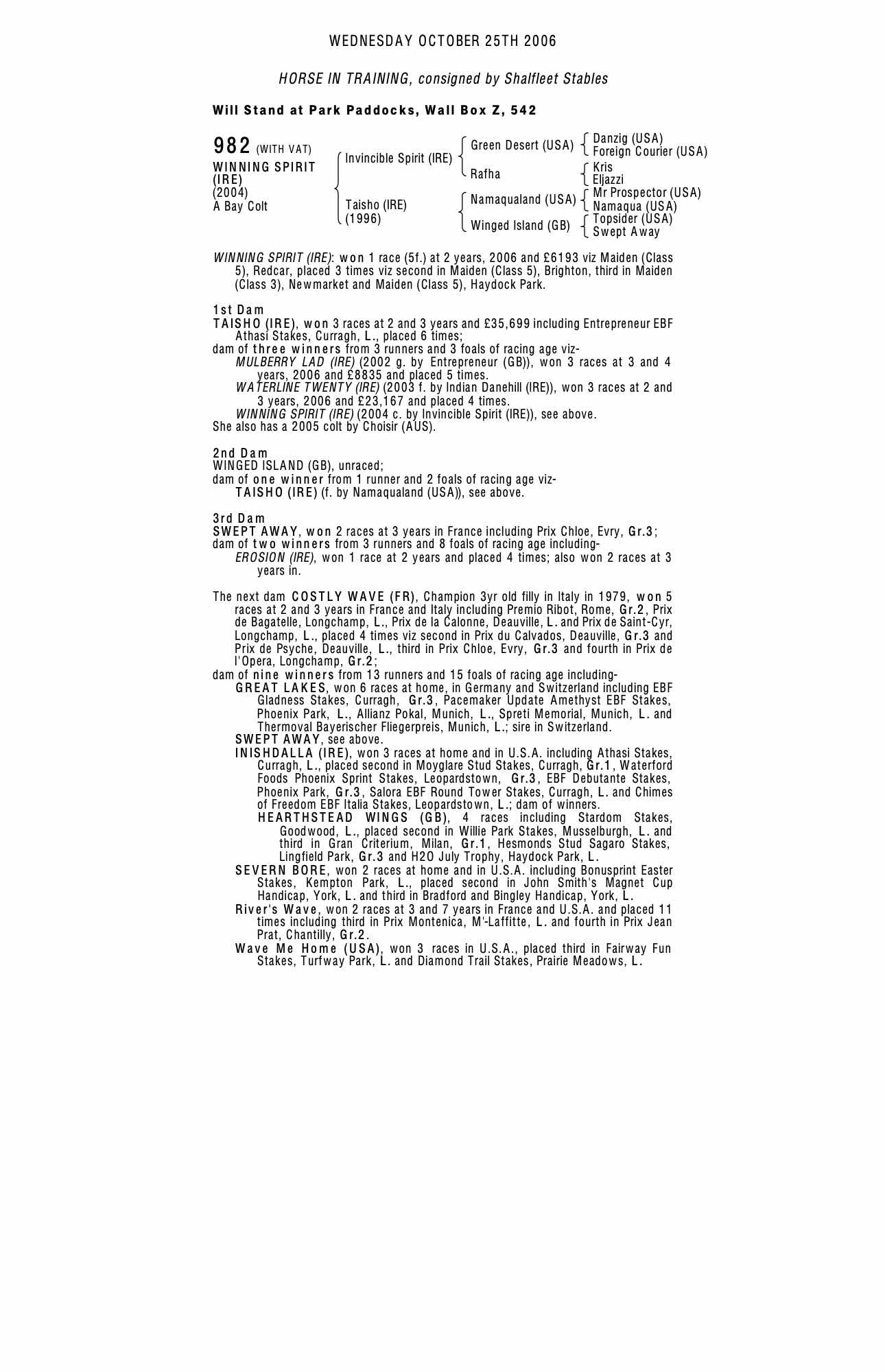 October Yearling Sale, Book 2 2006 lot 898 C. by Choisir (AUS) 2005, Mountarmstrong Stud, Ireland=>Vendor 40,000 gns