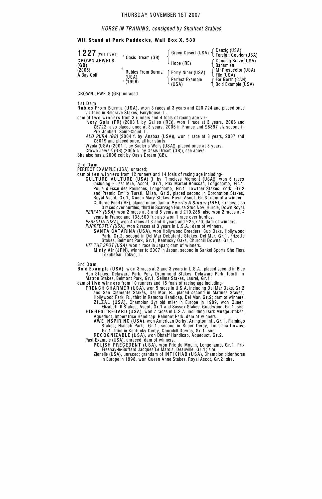 October Yearling Sale, Book 1 2006 lot 447 C. 2005, Yeomanstown Stud, Ireland=>Jeremy Noseda 190,000 gns
