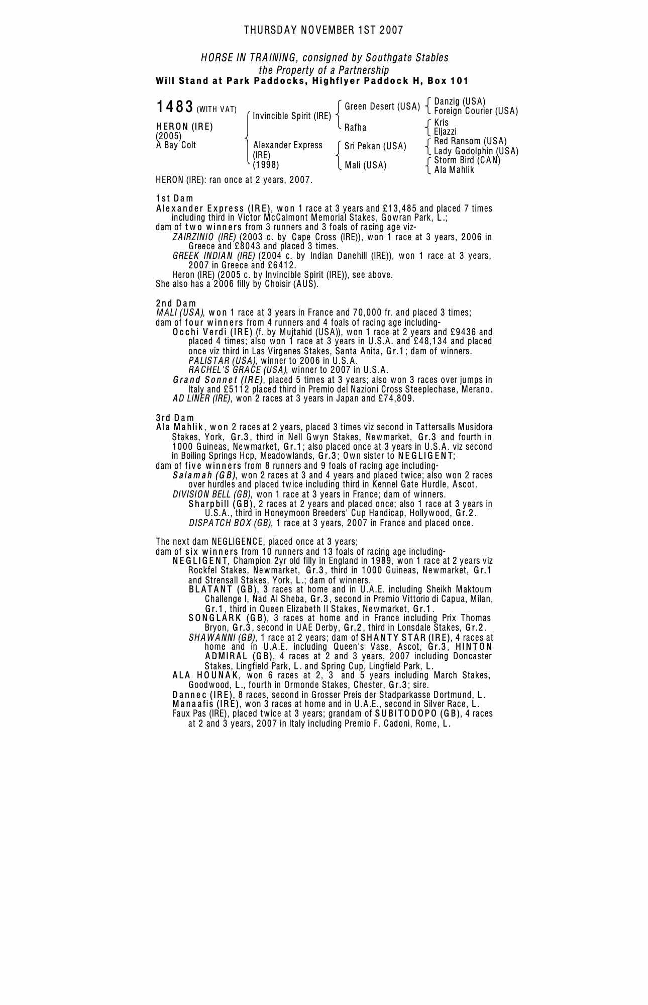 October Yearling Sale, Book 3 2007 lot 1587 F. by Choisir (AUS) 2006, Mountarmstrong Stud, Ireland=>Peter Doyle Bloodstock 7,000 gns