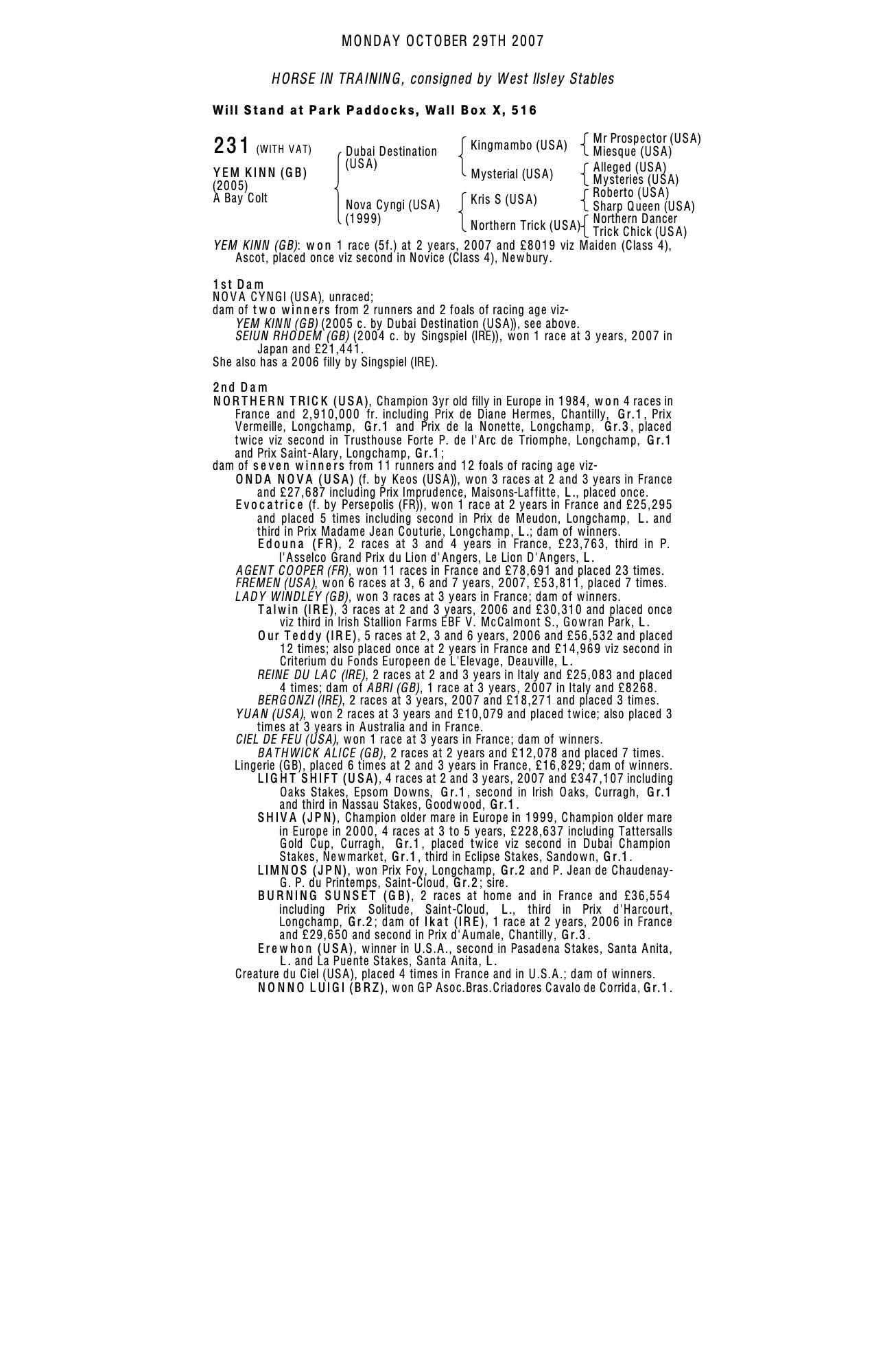 October Yearling Sale, Book 1 2006 lot 354 C. 2005, New England Stud=>Edward Dunlop 55,000 gns