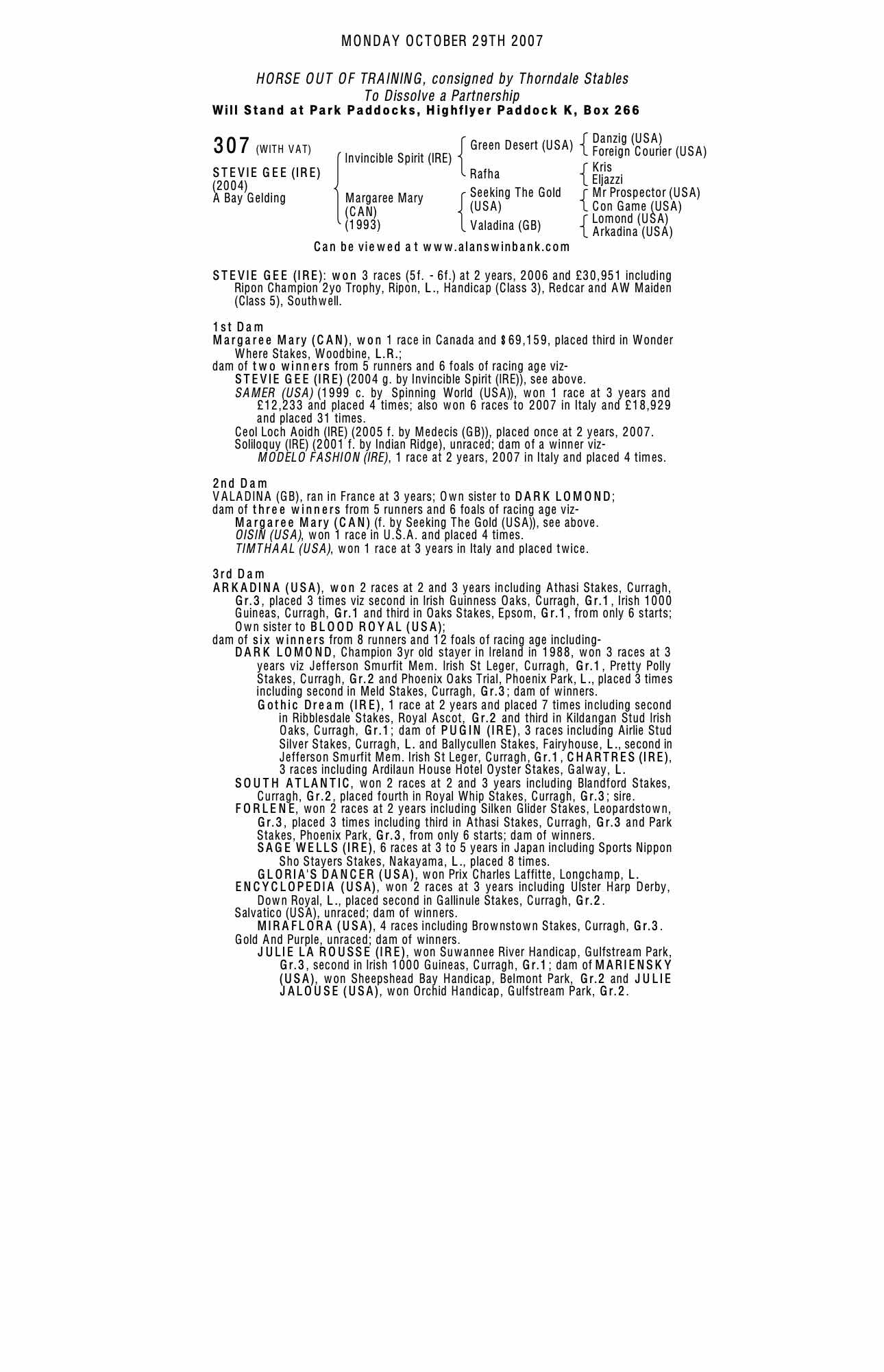 December Mare Sale 2007 lot 3054 Summer in Siam (IRE) (M. by Indian Ridge), Mulgrave Lodge Stables, Ireland=>Lot Not Sold 27,000 gns