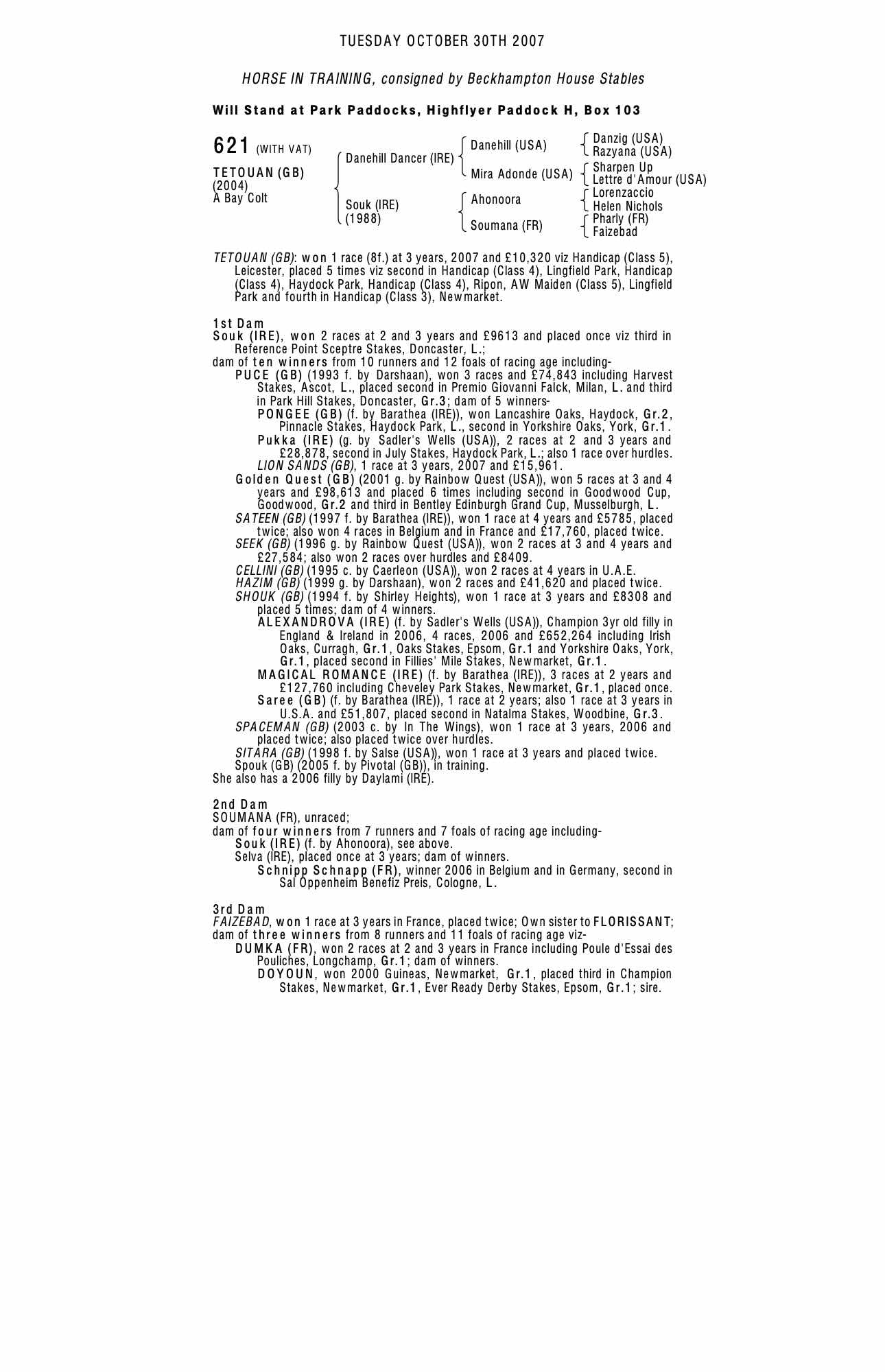 October Yearling Sale, Book 1 2005 lot 607 C. 2004, Voute Sales, Agent=>C Gordon-Watson Bloodstock 120,000 gns