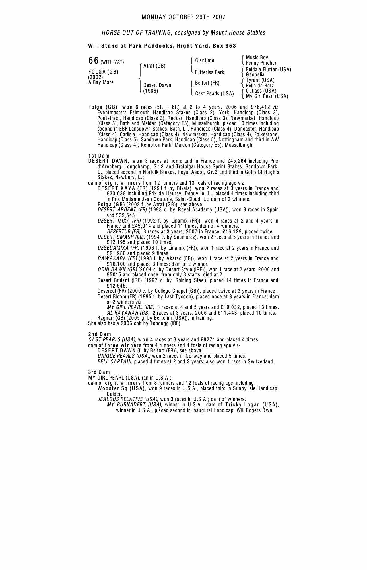 December Mare Sale 2002 lot 1621 Desert Kaya (FR) (M. by Bikala), Haras d'Ouilly, France=>Lot Not Sold 18,000 gns