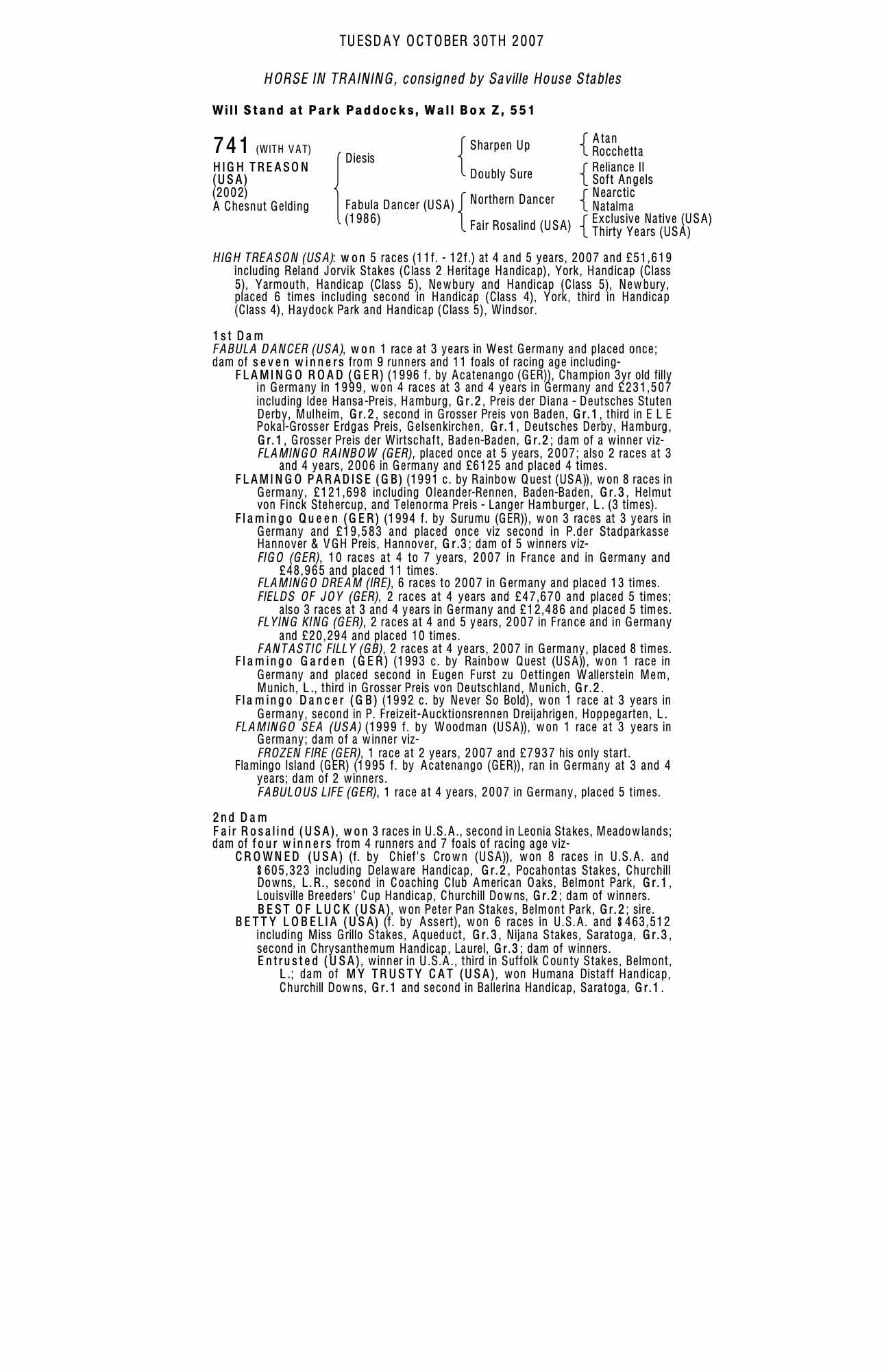 December Mare Sale 2002 lot 1976 Flamingo Queen (GER) (M. by Surumu (GER)), Gestut Park Wiedingen, Germany=>Newsells Park Stud 100,000 gns