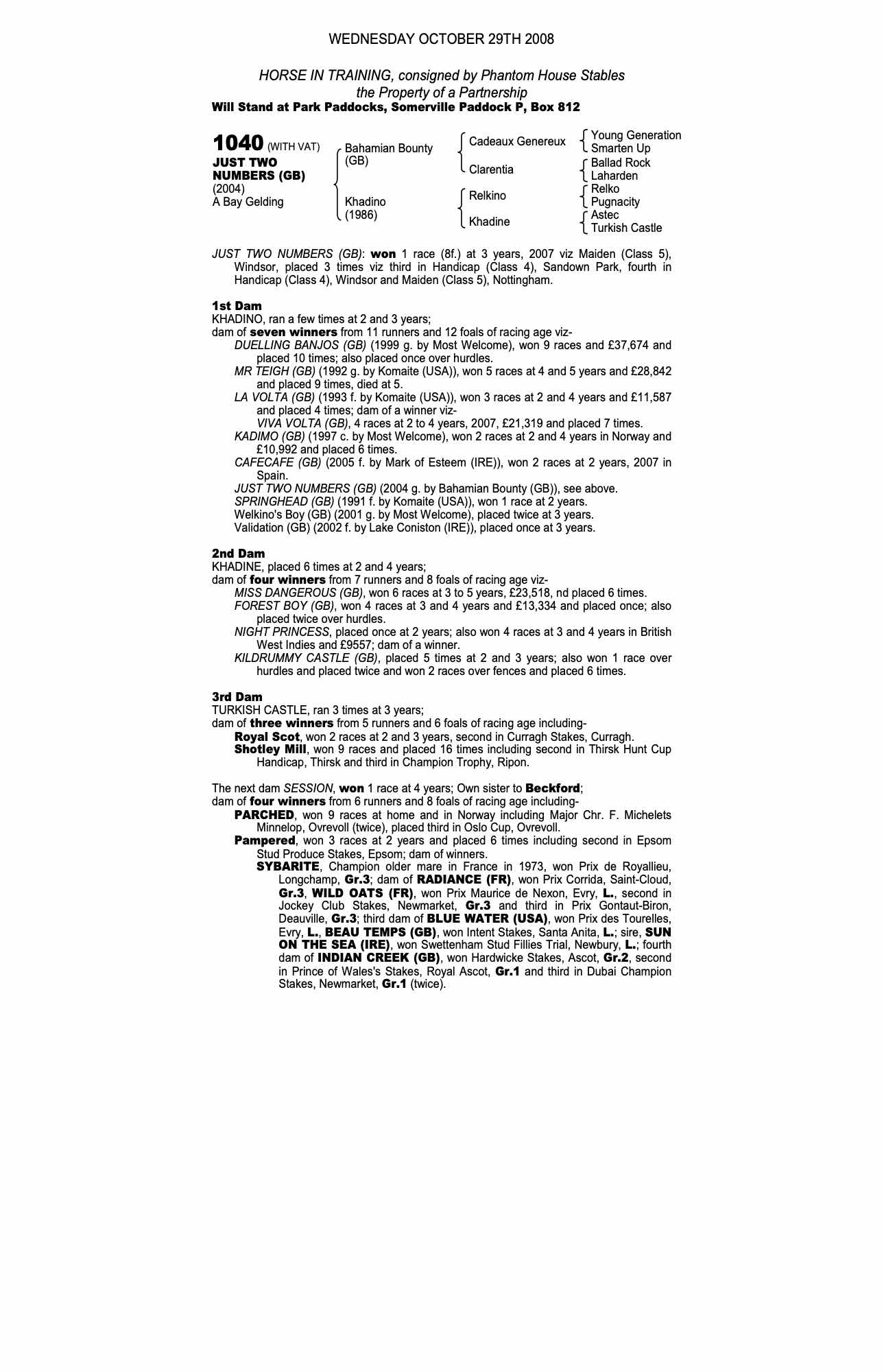 October Yearling Sale, Book 2 2003 lot 1695 F. by Lake Coniston (IRE) 2002, Beechgrove Stud=>Alan McCabe 1,300 gns