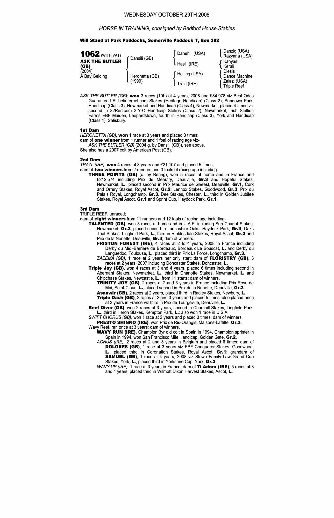 Consignor: Bedford House Stables