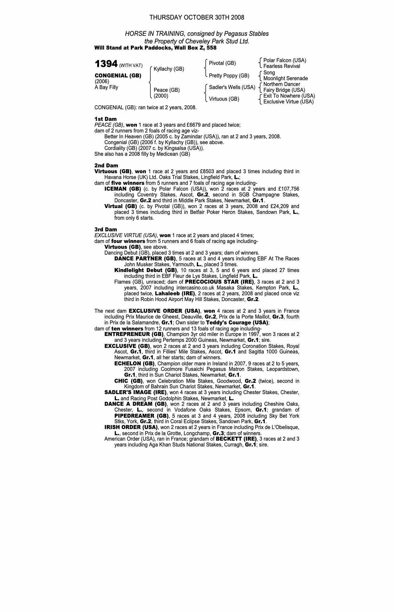 Autumn Horses in Training Sale 2008 lot 1283 Better in Heaven (GB) (C. by Zamindar (USA)), Windsor House Stables=>Lot Not Sold