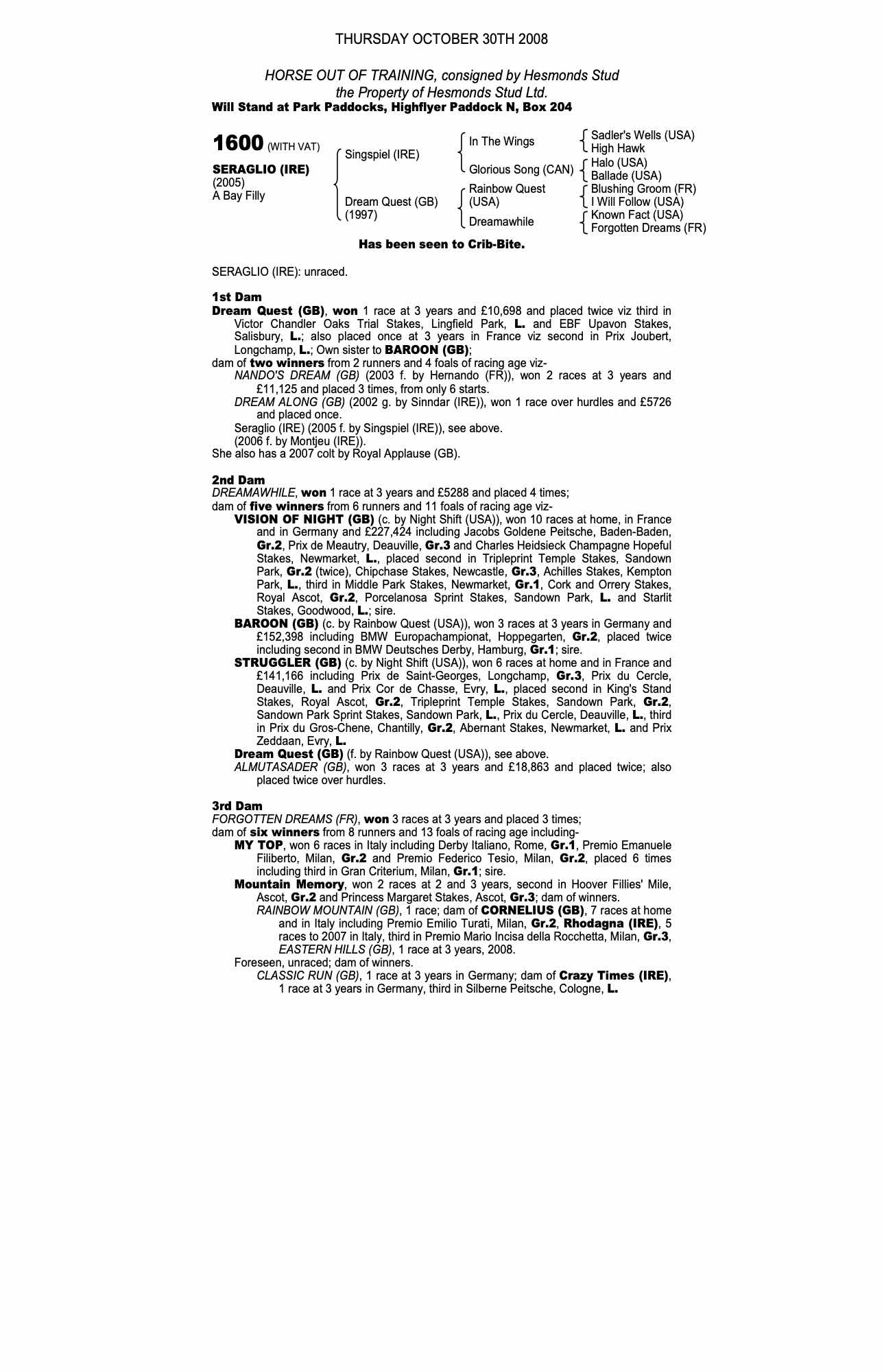 December Mare Sale 2007 lot 2415 Nando's Dream (GB) (M. by Hernando (FR)), Hesmonds Stud=>Lot Not Sold 95,000 gns