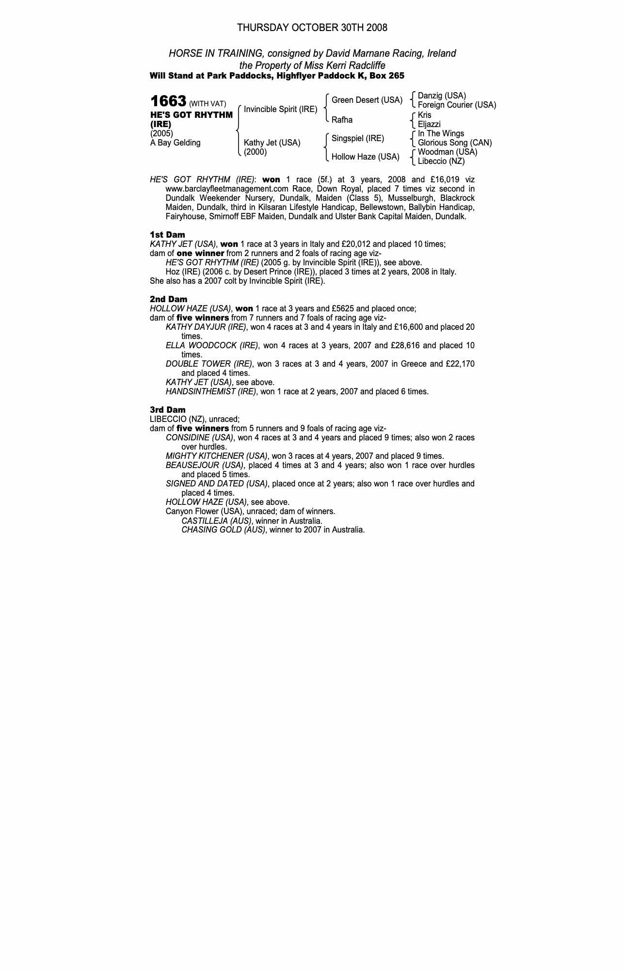 Consignor: David Marnane Racing, Ireland