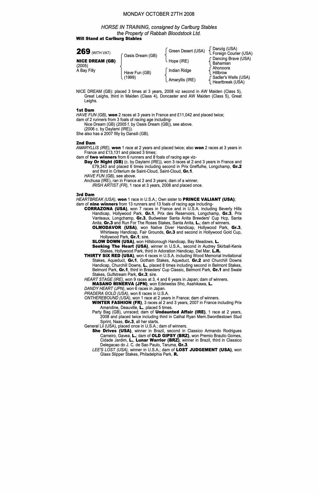 December Yearling Sale 2008 lot 74 F. by Dansili (GB) 2007, Whatton Manor Stud=>Vendor 11,000 gns