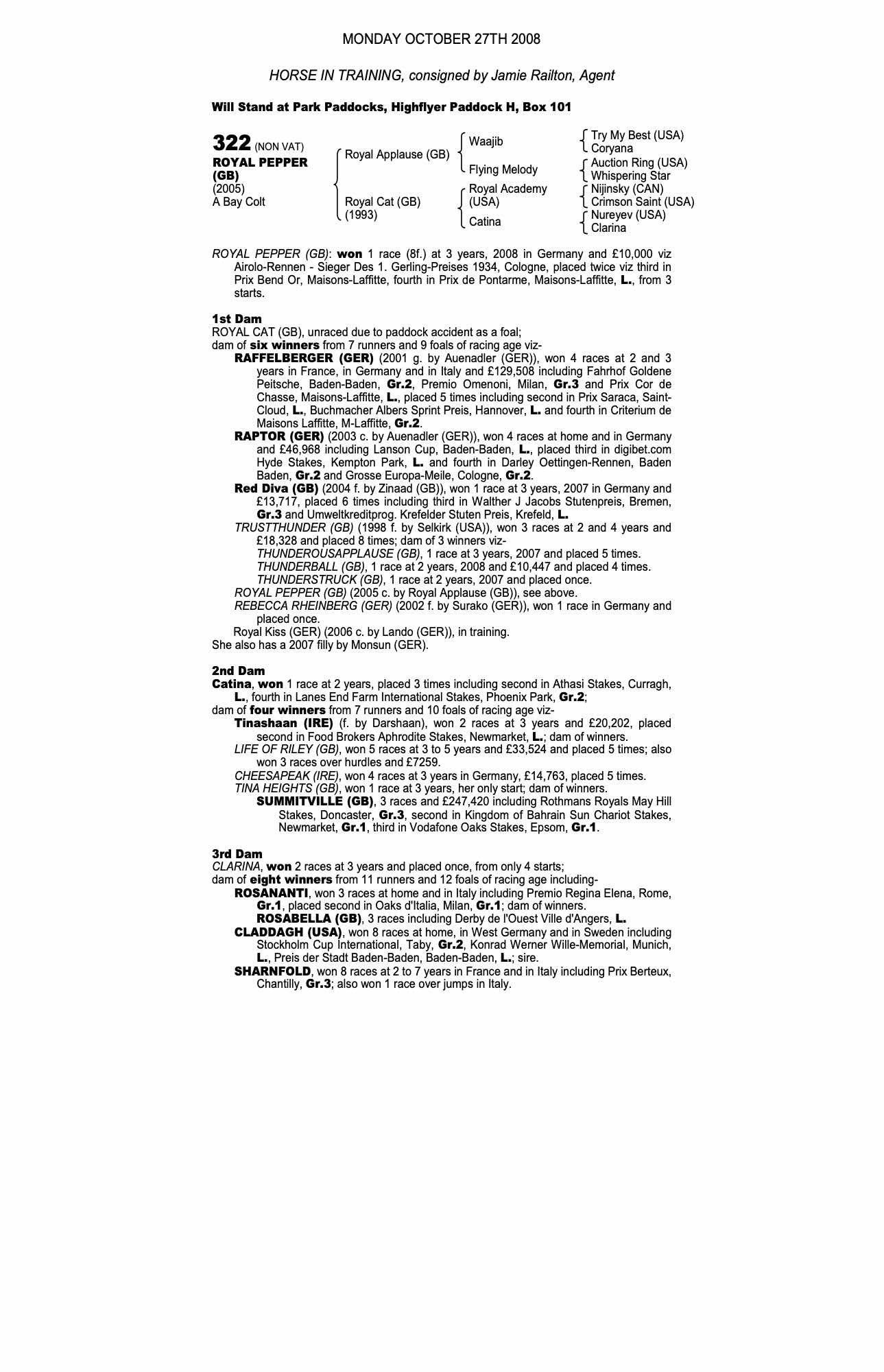 July Sale 2009 lot 729 Raptor (GER) (H. by Auenadler (GER)), Mogeely Stud, Ireland=>Lot Not Sold 19,000 gns