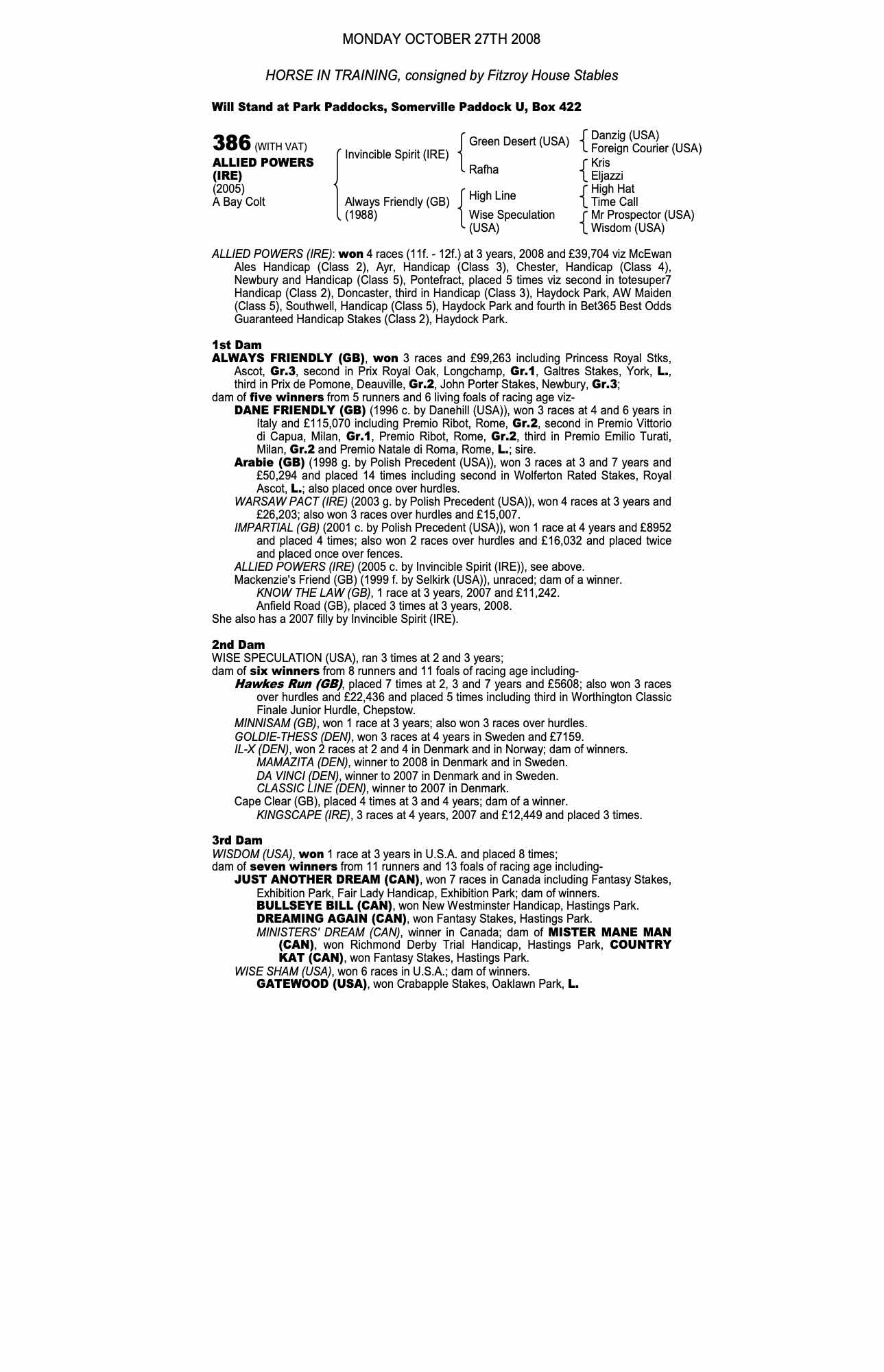 October Yearling Sale, Book 1 2008 lot 354 F. 2007, Ringfort Stud, Ireland (Agent)=>Willie Browne 45,000 gns