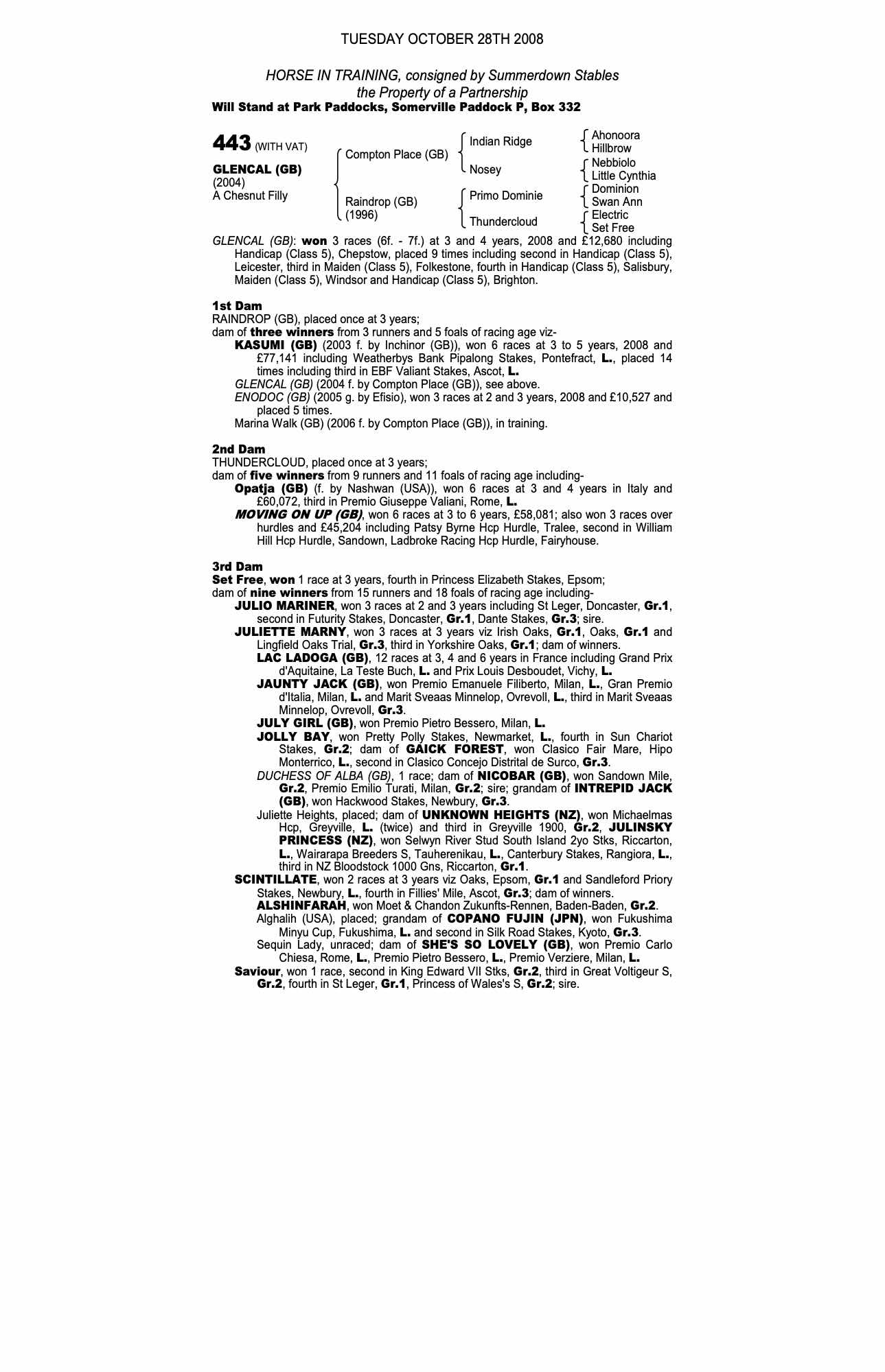 October Yearling Sale, Book 2 2004 lot 1070 F. by Inchinor (GB) 2003, Fonthill Stud=>Geoffrey Howson Bloodstock 5,000 gns