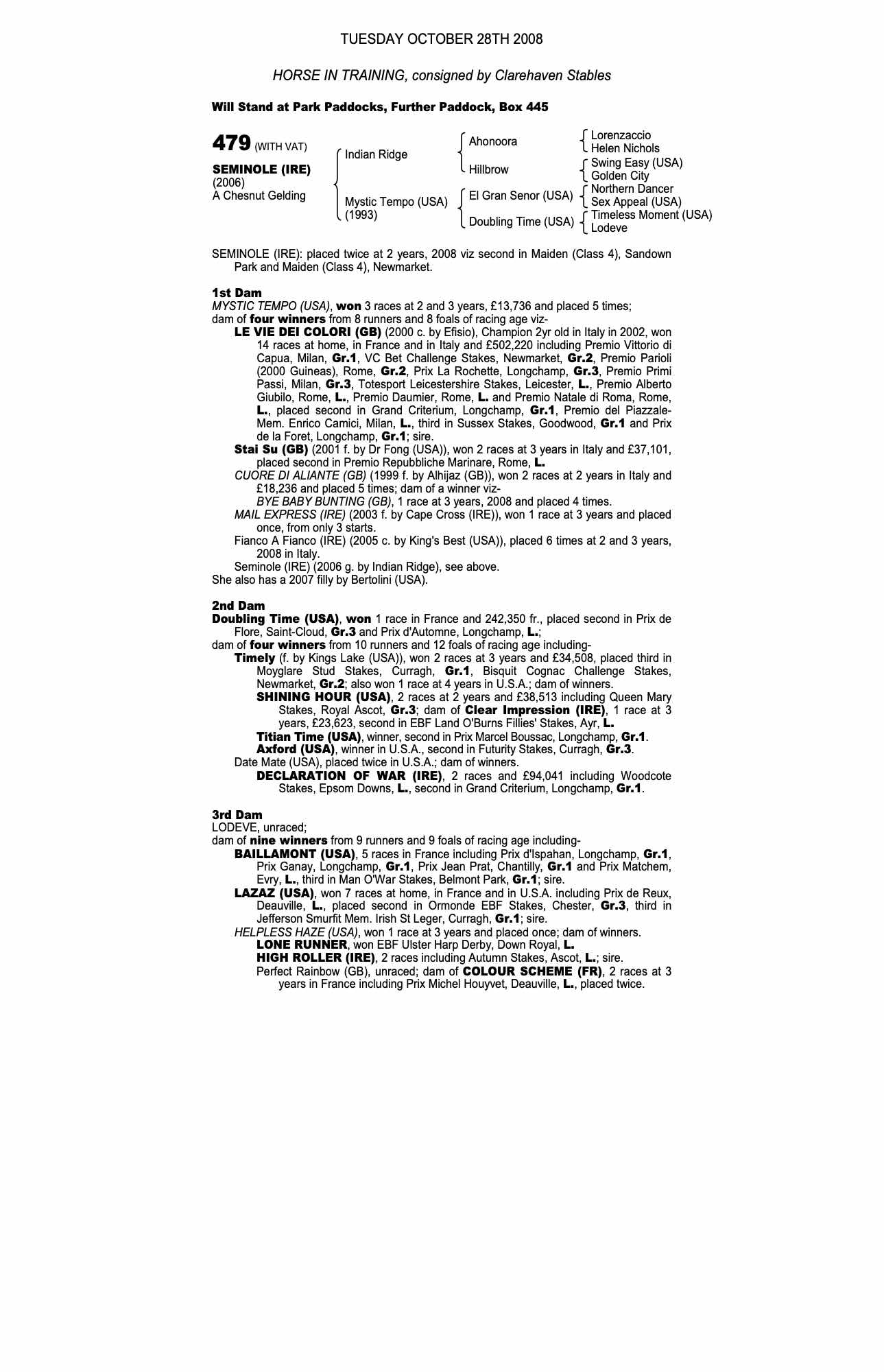 October Yearling Sale, Book 2 2008 lot 720 F. by Bertolini (USA) 2007, Kildaragh Stud, Ireland=>Vendor 18,000 gns