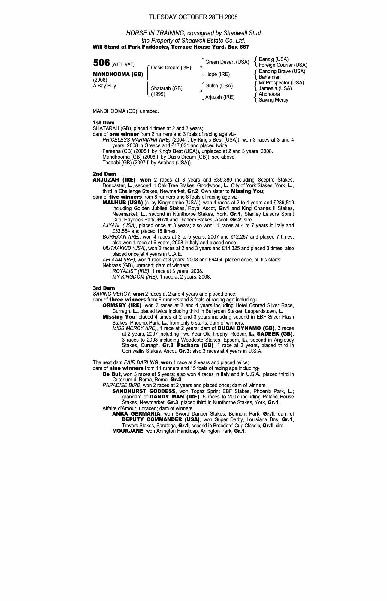 Consignor: Shadwell Stud