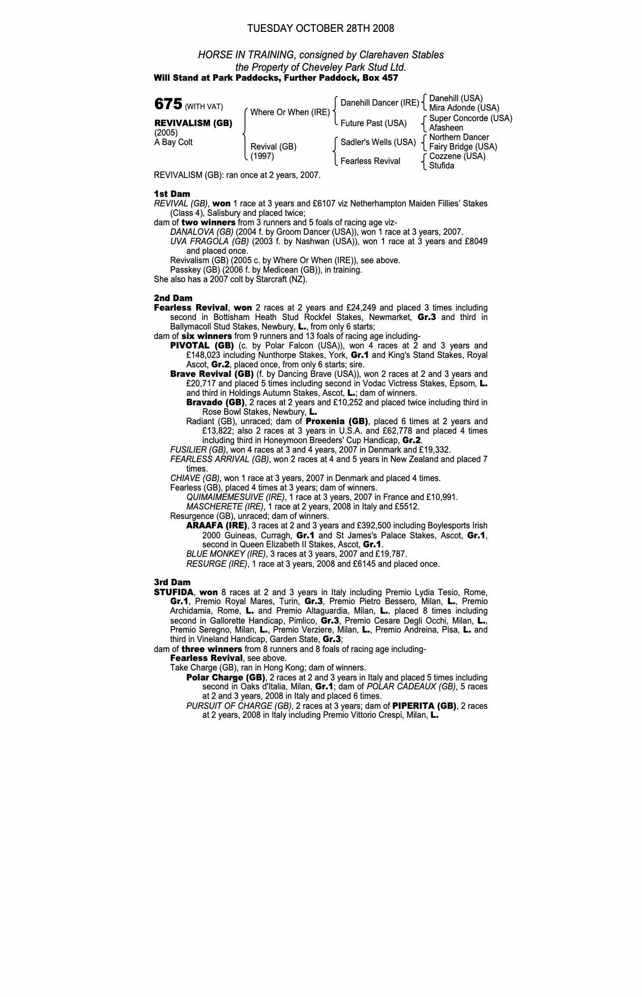 July Sale 2010 lot 668 Starcraft Revival (GB) (C. by Starcraft (NZ)), Bedford House Stables (L. Cumani)=>Kern/Lillingston Association 8,000 gns