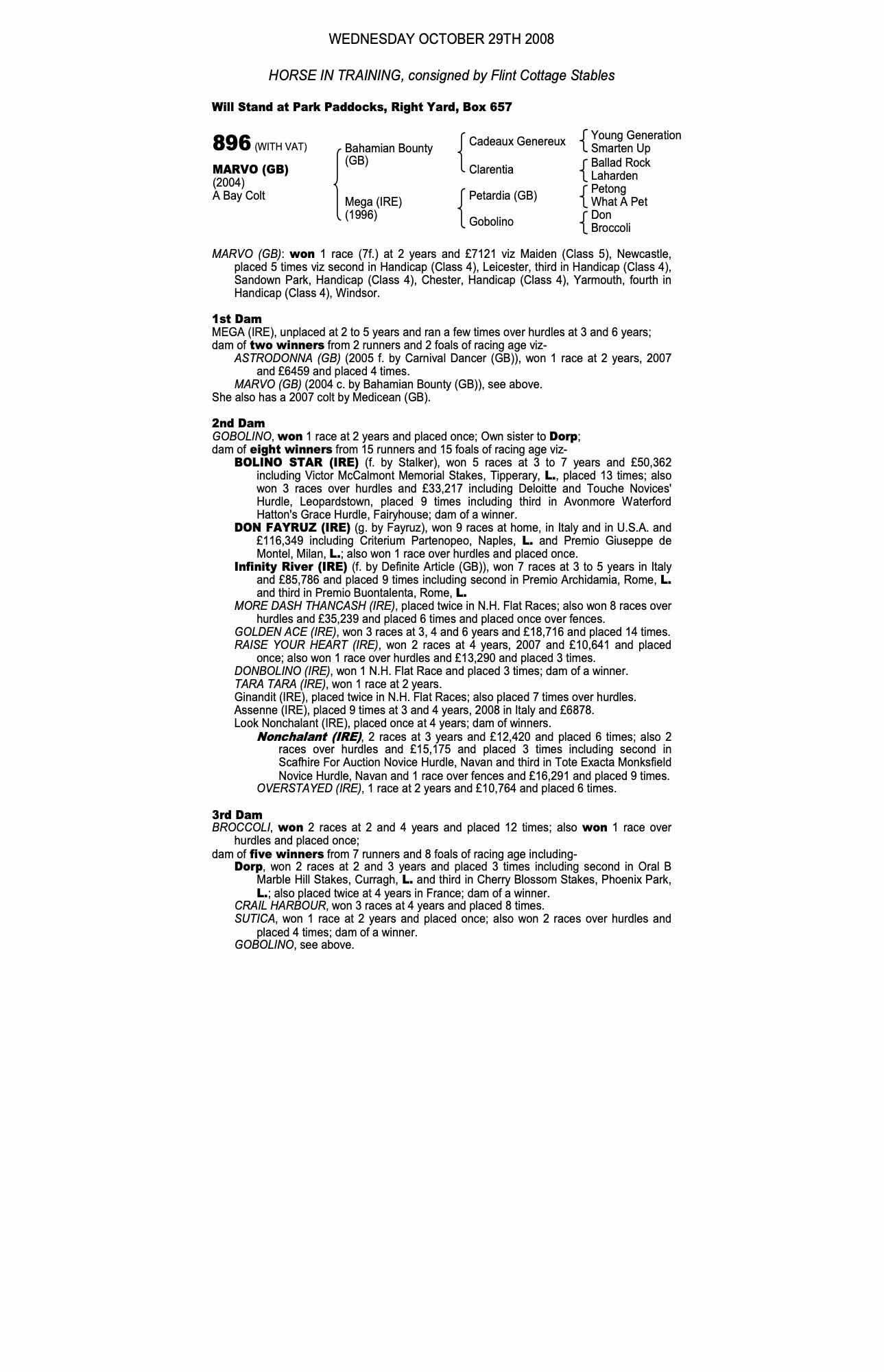 October Yearling Sale, Book 2 2005 lot 1101 C. 2004, John Troy, Agent=>MH Tompkins 12,000 gns