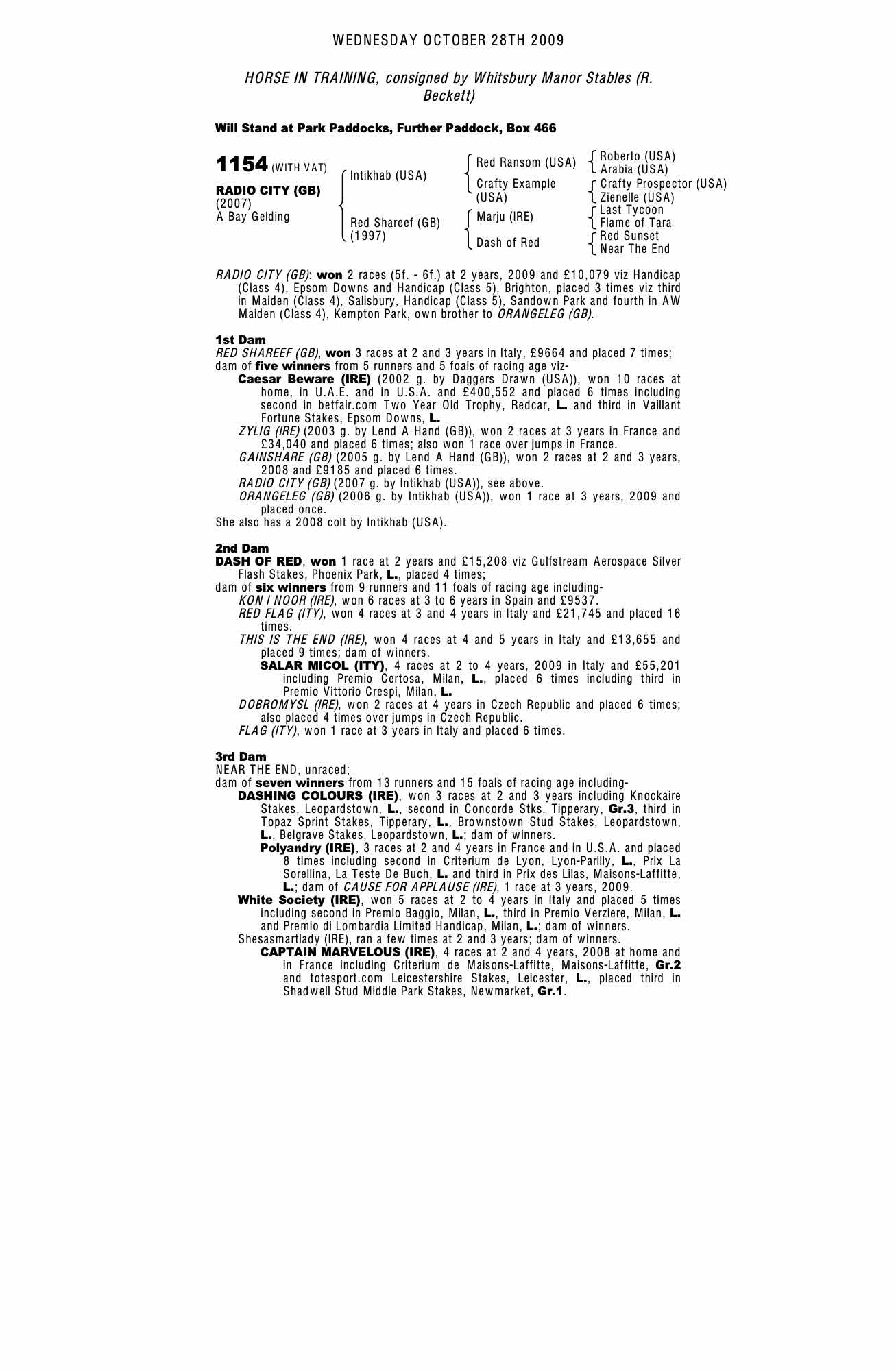 Consignor: Whitsbury Manor Stables (R. Beckett)