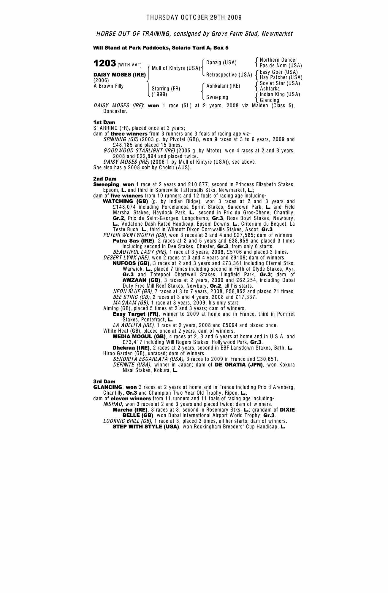 October Yearling Sale, Book 2 2009 lot 803 C. by Choisir (AUS) 2008, Lynn Lodge Stud, Ireland=>Walter Swinburn Racing 48,000 gns