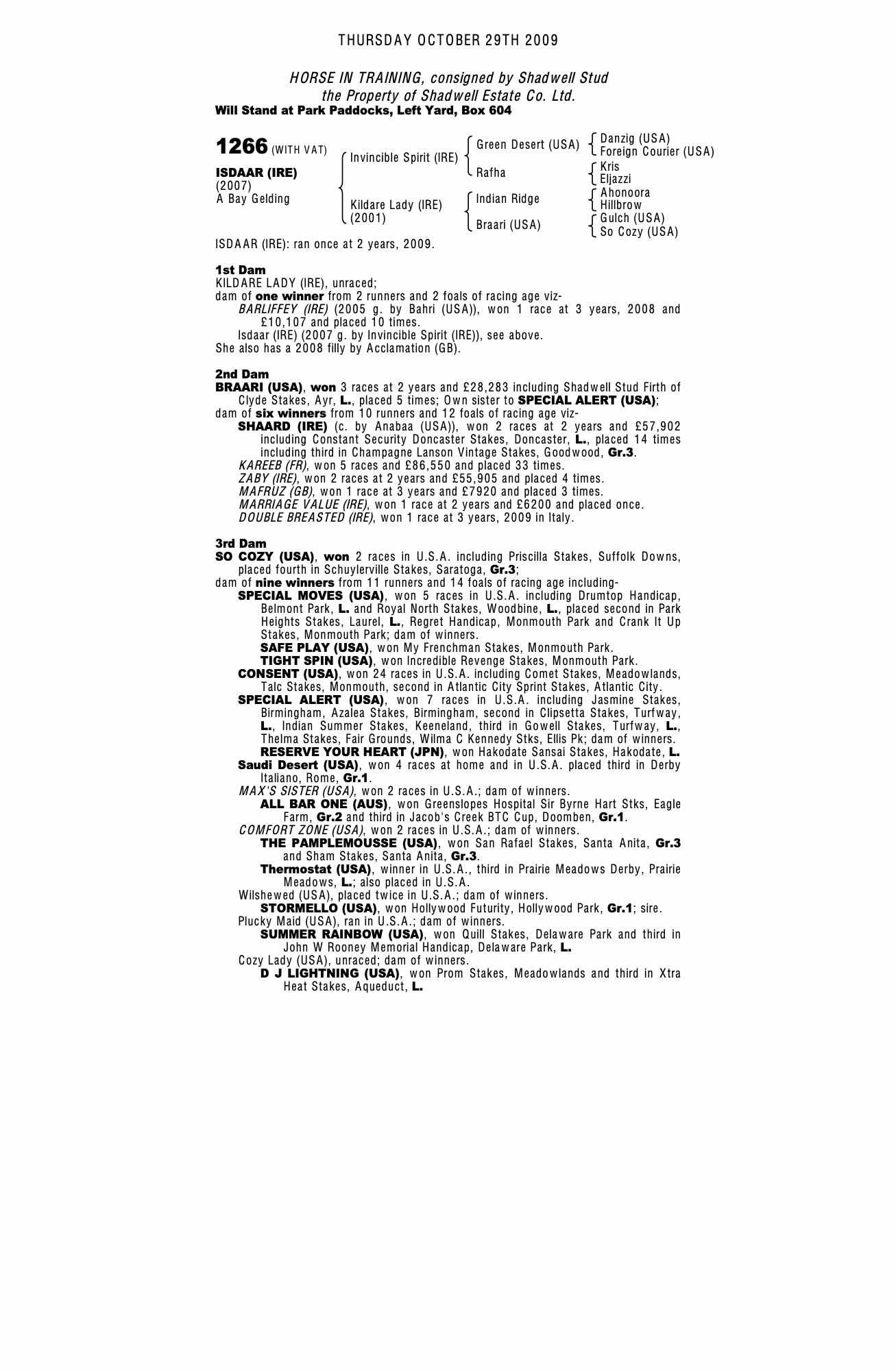 October Yearling Sale, Book 1 2008 lot 602 C. 2007, Hawthorn Villa Stud, Ireland=>Shadwell Estate Company 240,000 gns