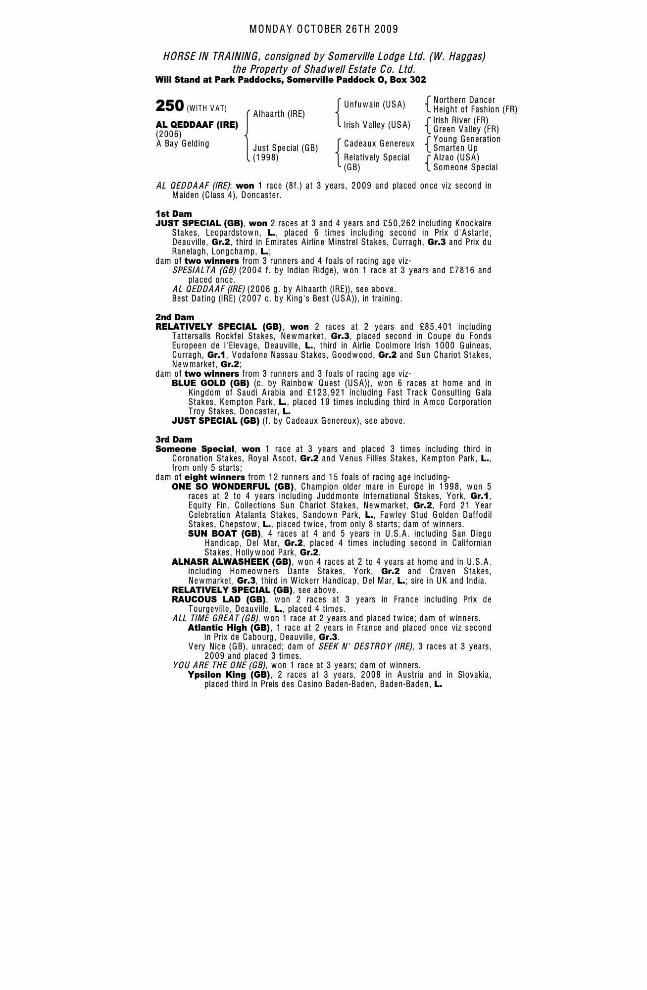 Consignor: Somerville Lodge Ltd. (W. Haggas)
