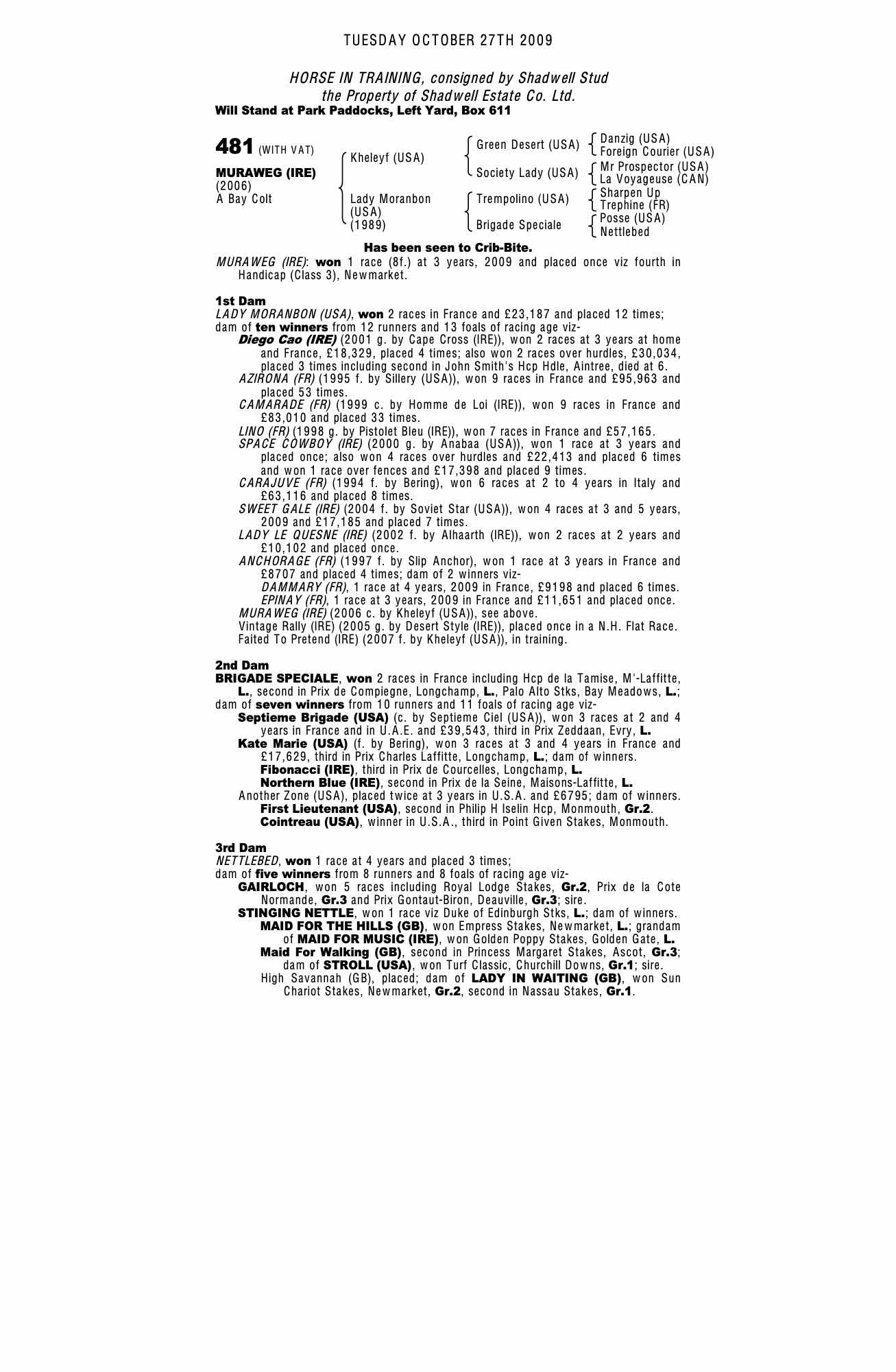 December Mare Sale 2009 lot 2145 Lady Le Quesne (IRE) (M. by Alhaarth (IRE)), Catridge Farm Stud=>J Kersey 6,000 gns