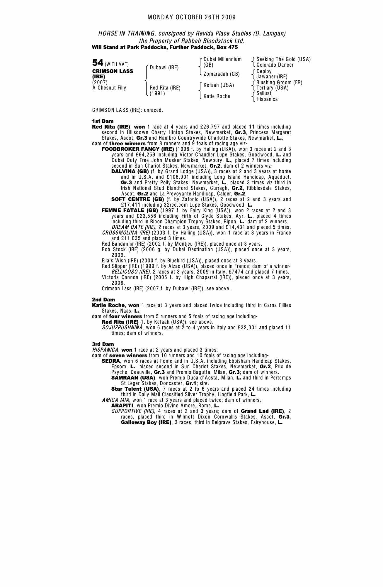 October Yearling Sale, Book 1 2006 lot 427 F. by High Chaparral (IRE) 2005, Voute Sales Ltd. (Agent)=>Lot Not Sold 30,000 gns