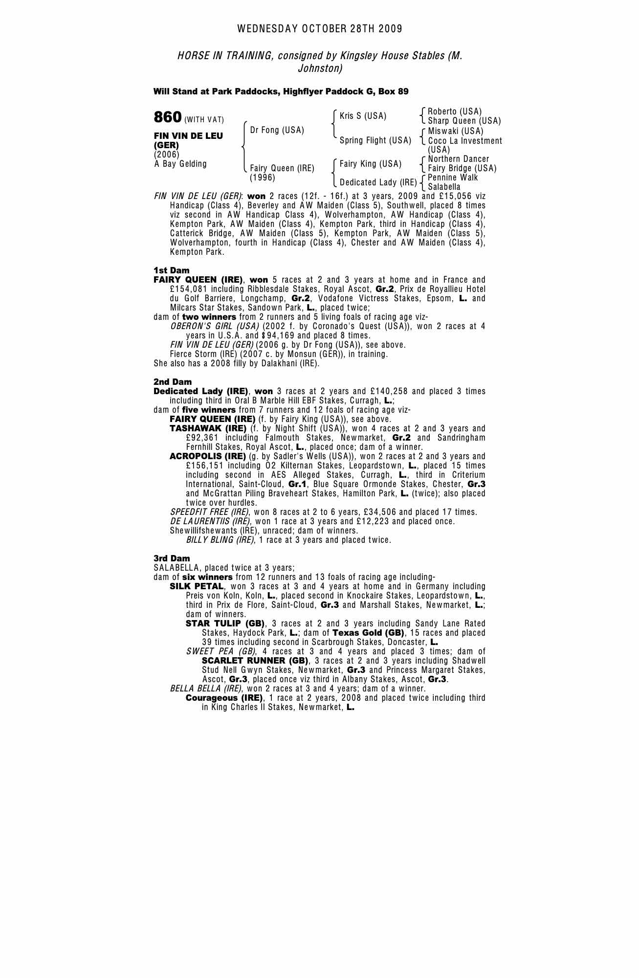 Consignor: Kingsley House Stables (M. Johnston)