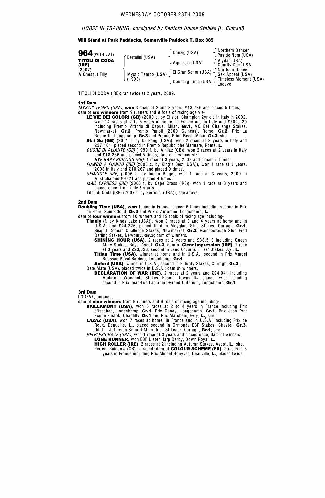 October Yearling Sale, Book 2 2008 lot 720 F. 2007, Kildaragh Stud, Ireland=>Vendor 18,000 gns