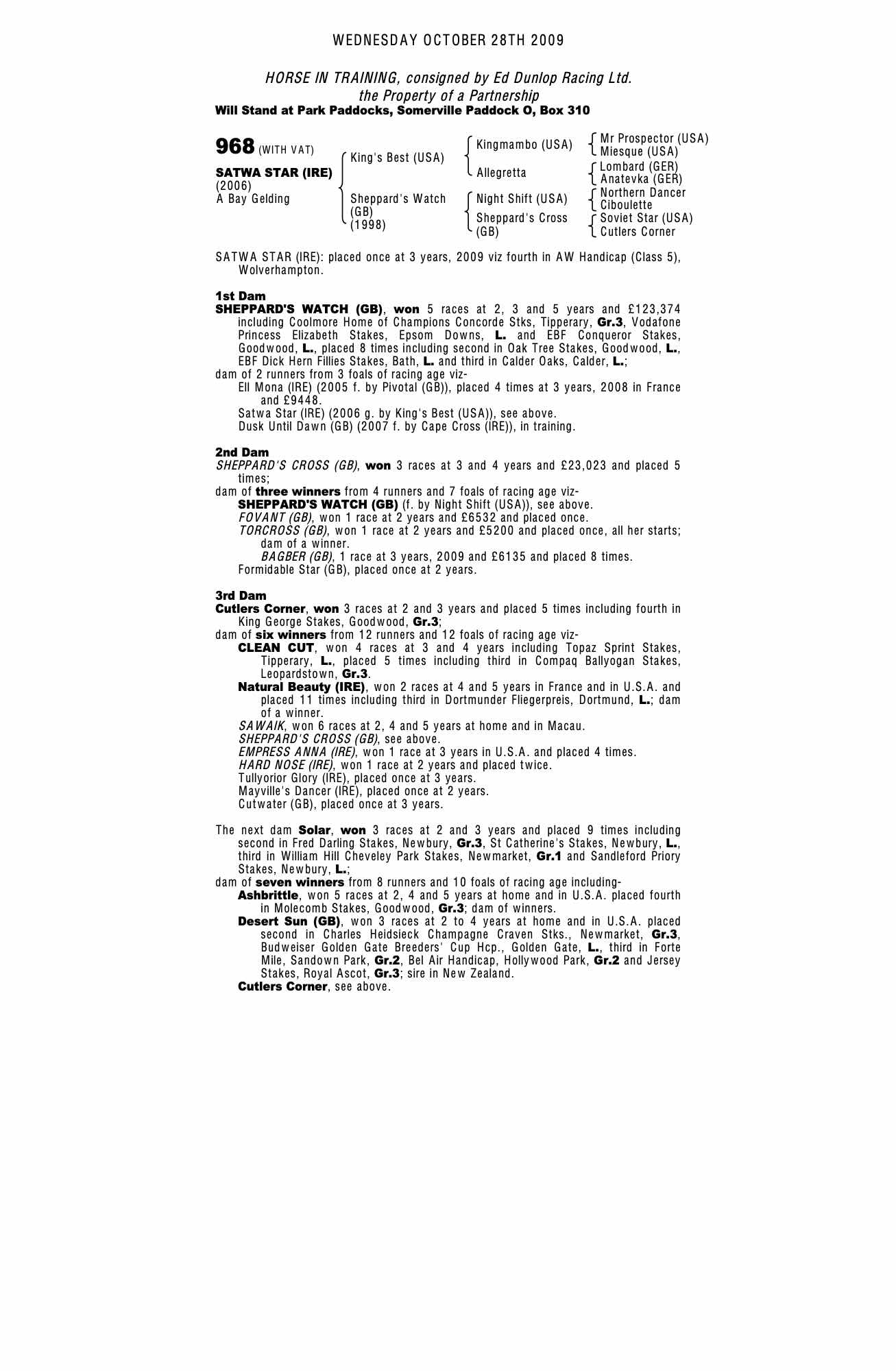 Consignor: Ed Dunlop Racing Ltd.