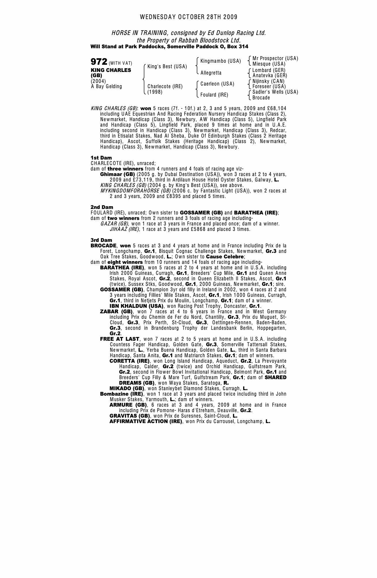 Autumn Horses in Training Sale 2009 lot 879 Ghimaar (GB) (G. by Dubai Destination (USA)), Shadwell Stud=>Highflyer Bloodstock 60,000 gns