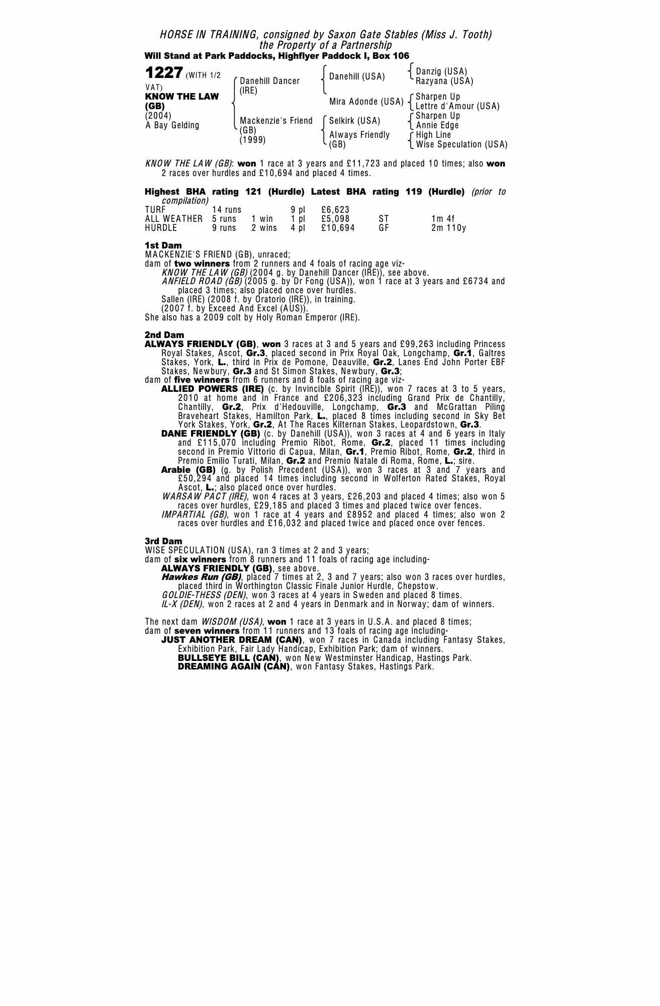 Consignor: Saxon Gate Stables (Miss J. Tooth)