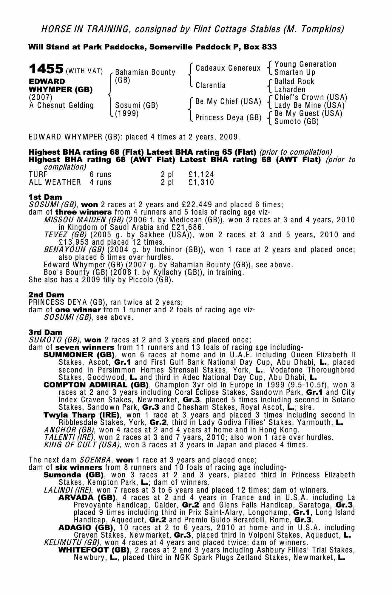 Consignor: Flint Cottage Stables (M. Tompkins)