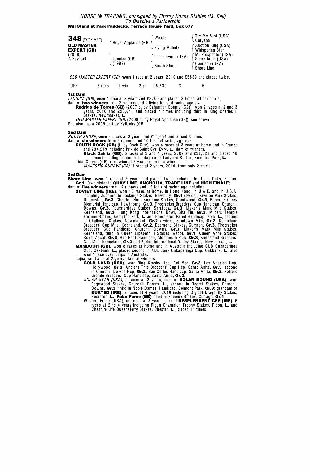 Consignor: Fitzroy House Stables (M. Bell)
