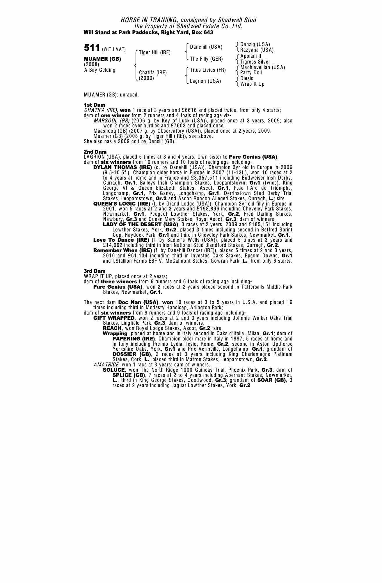 July Sale 2012 lot 316 Mokbil (IRE) (G. by Dansili (GB)), Shadwell Stud=>Nader FAF Alhajeri 4,500 gns