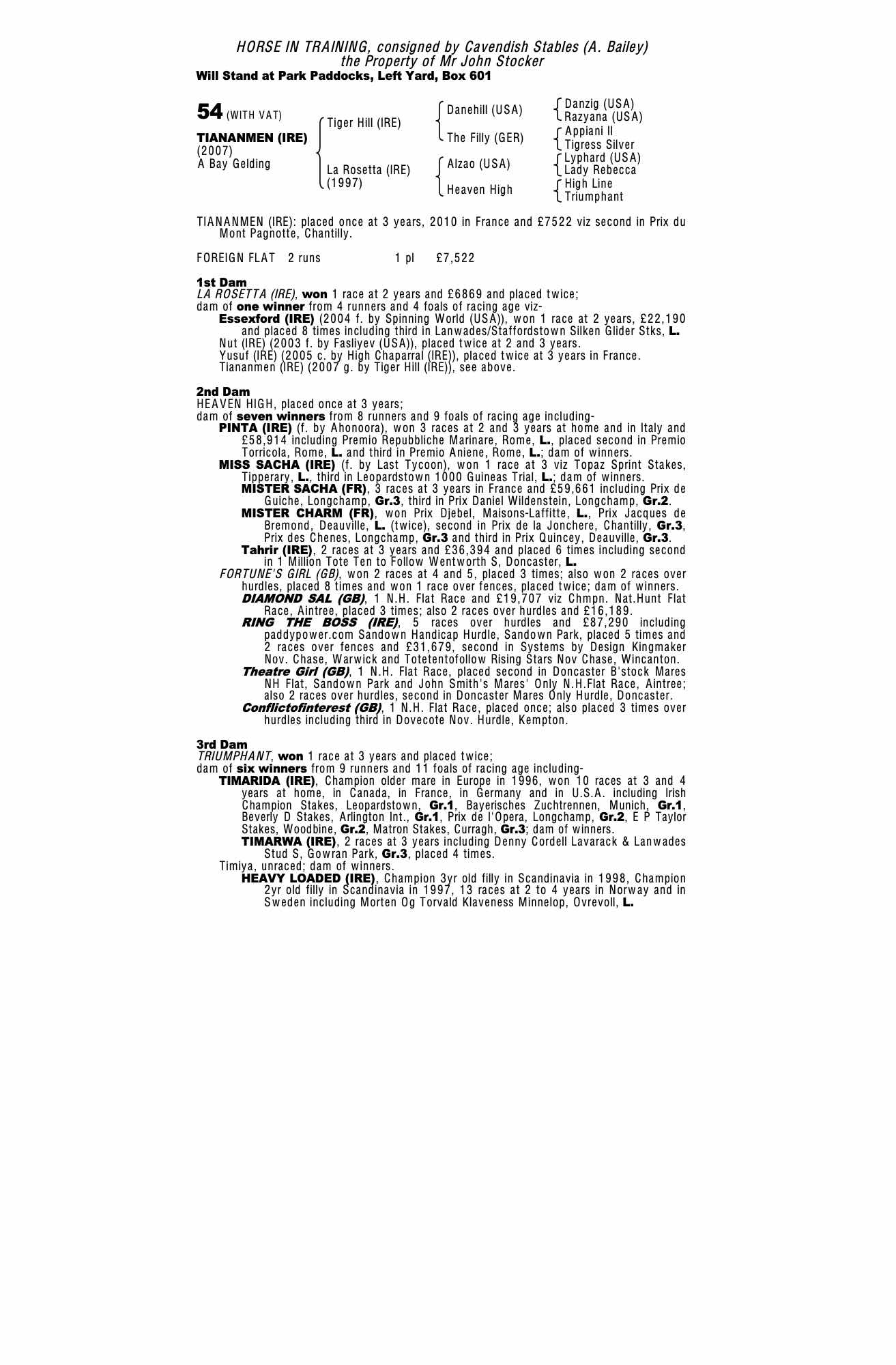 Consignor: Cavendish Stables (A. Bailey)