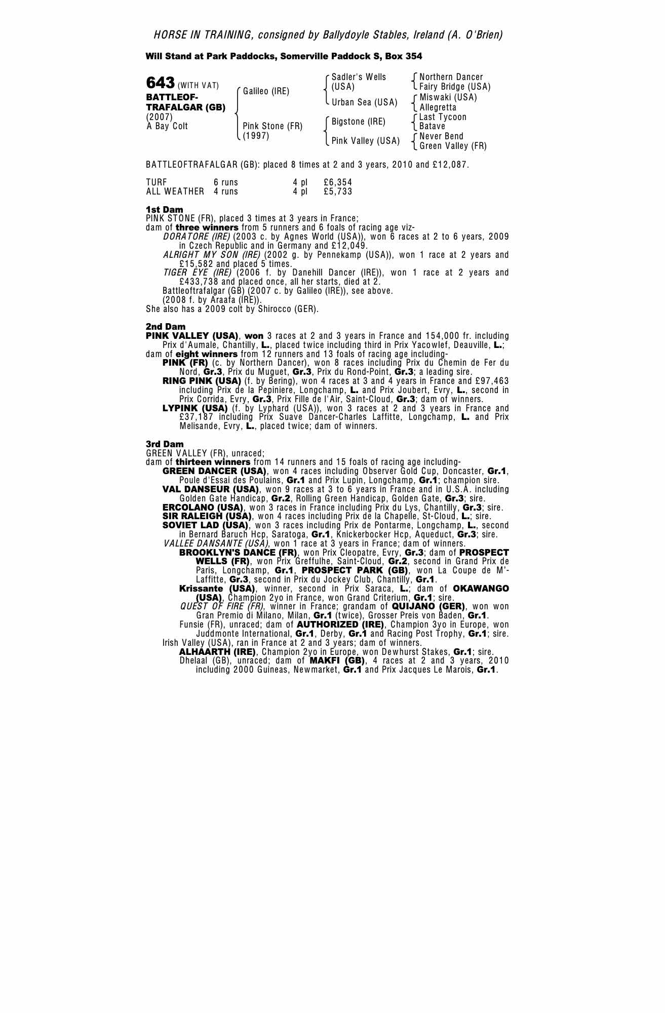 October Yearling Sale, Book 2 2004 lot 1059 C. by Agnes World (USA) 2003, Kildaragh Stud, Ireland (Agent)=>Lot Not Sold 27,000 gns