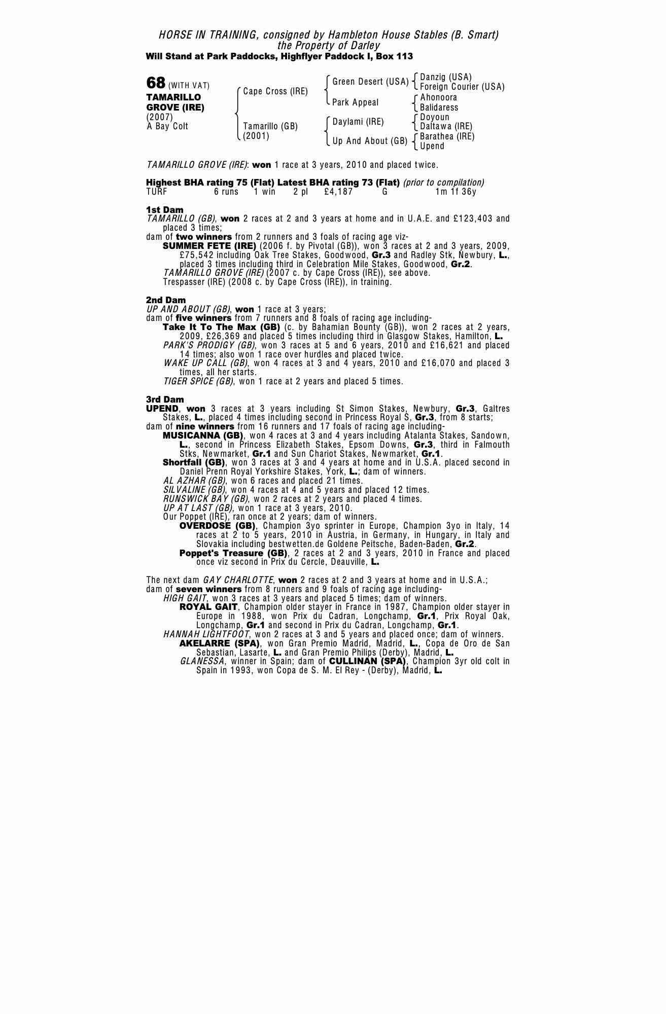 Consignor: Hambleton House Stables (B. Smart)