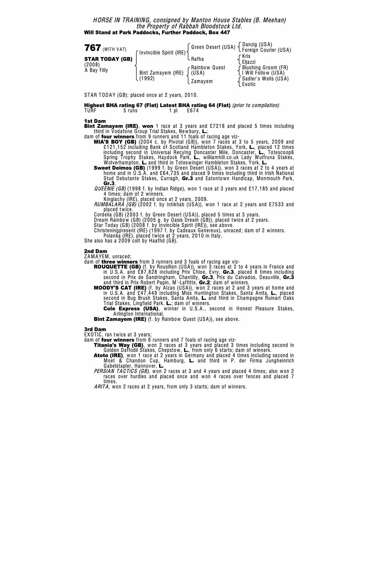 July Sale 2005 lot 310 Rumbalara (GB) (F. by Intikhab (USA)), Manton House Stables=>Lot Not Sold