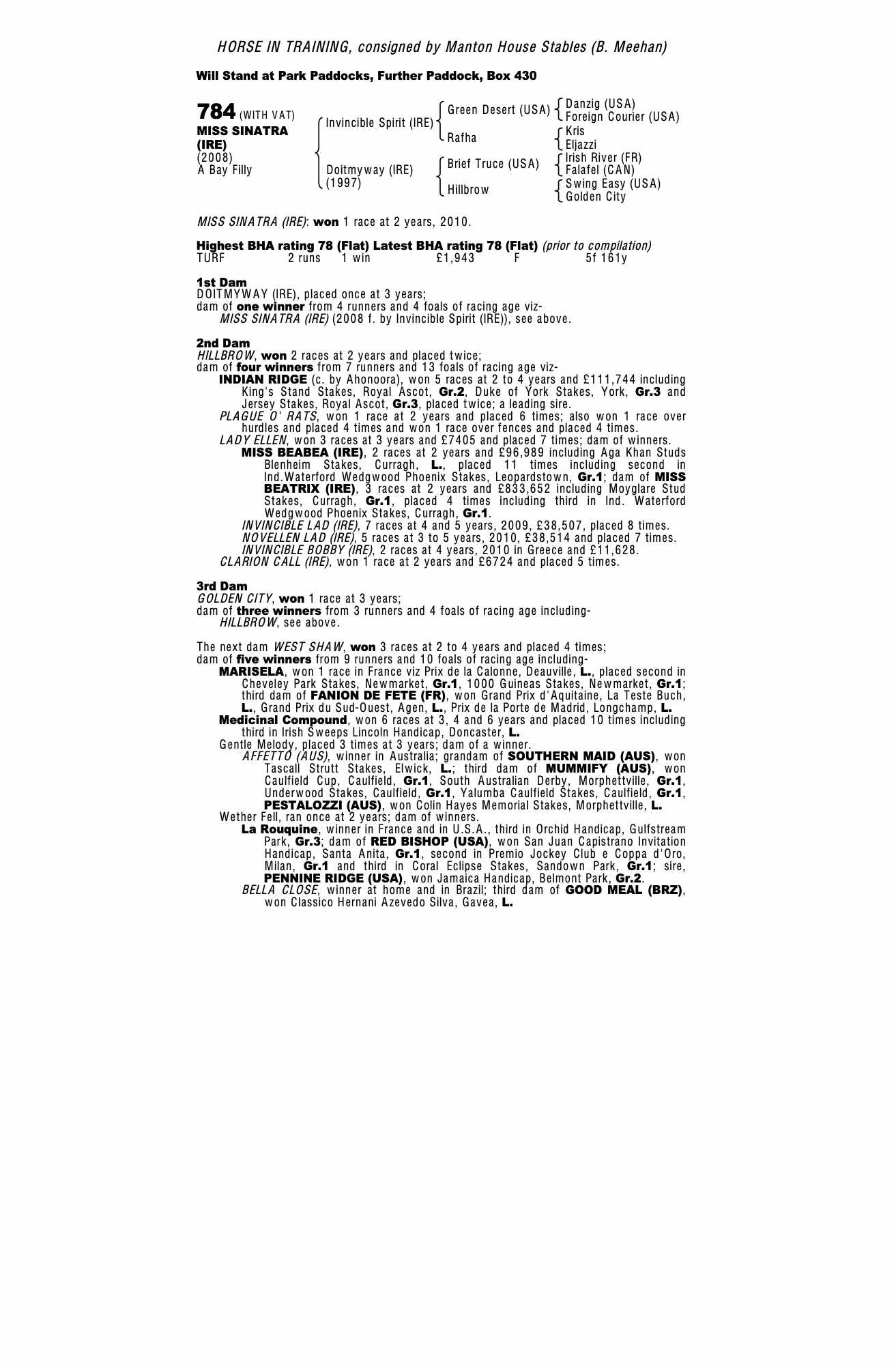 Consignor: Manton House Stables (B. Meehan)