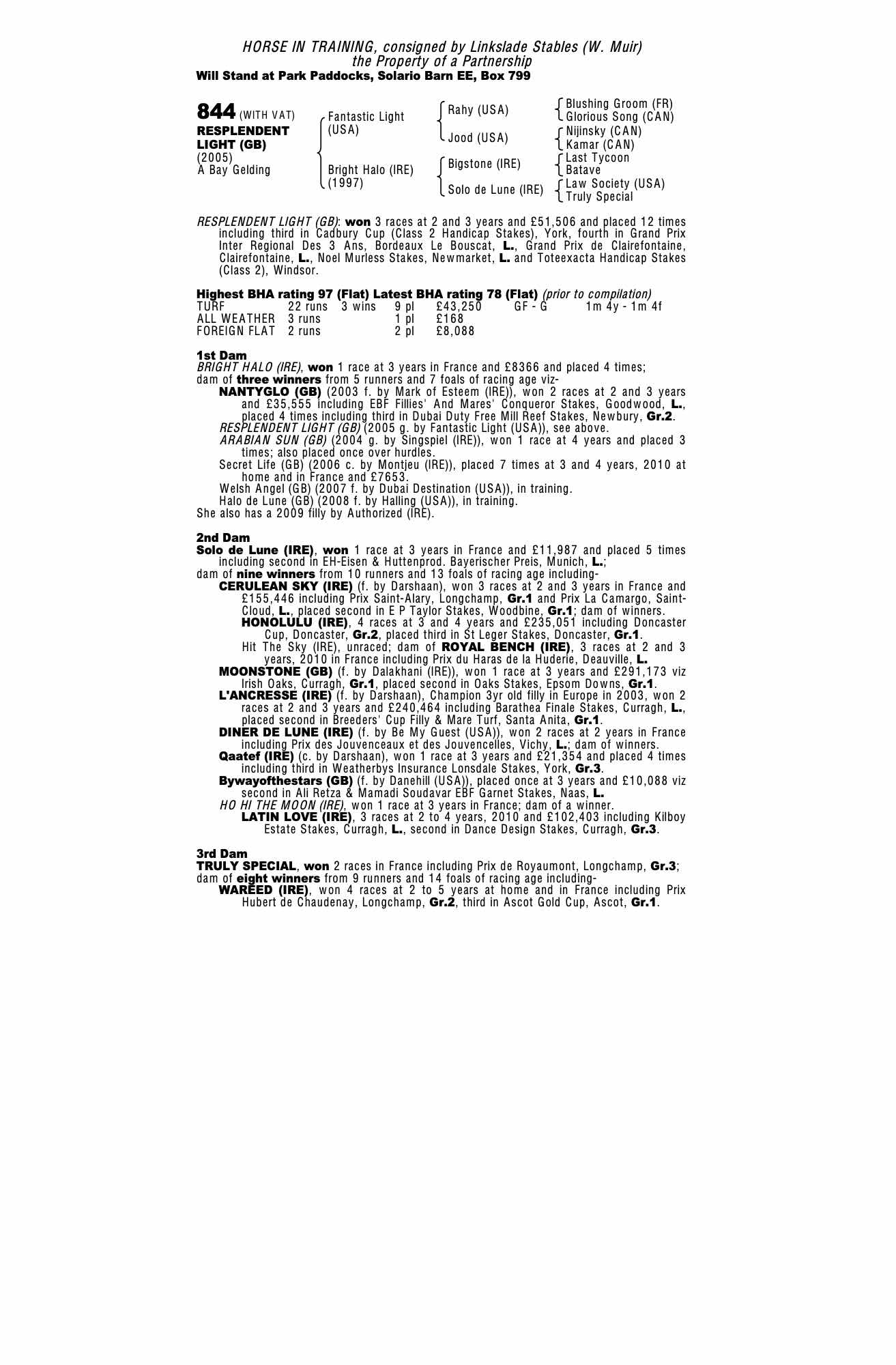 Autumn Horses in Training Sale 2009 lot 805, Linkslade Stables (W. Muir)=>Lot Not Sold 38,000 gns