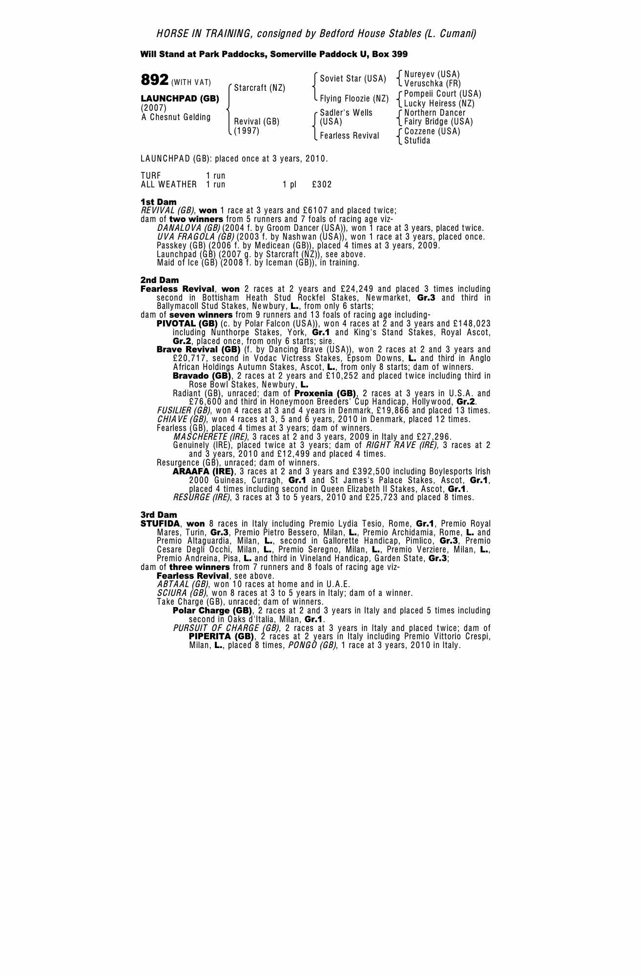 July Sale 2010 lot 668, Bedford House Stables (L. Cumani)=>Kern/Lillingston Association 8,000 gns