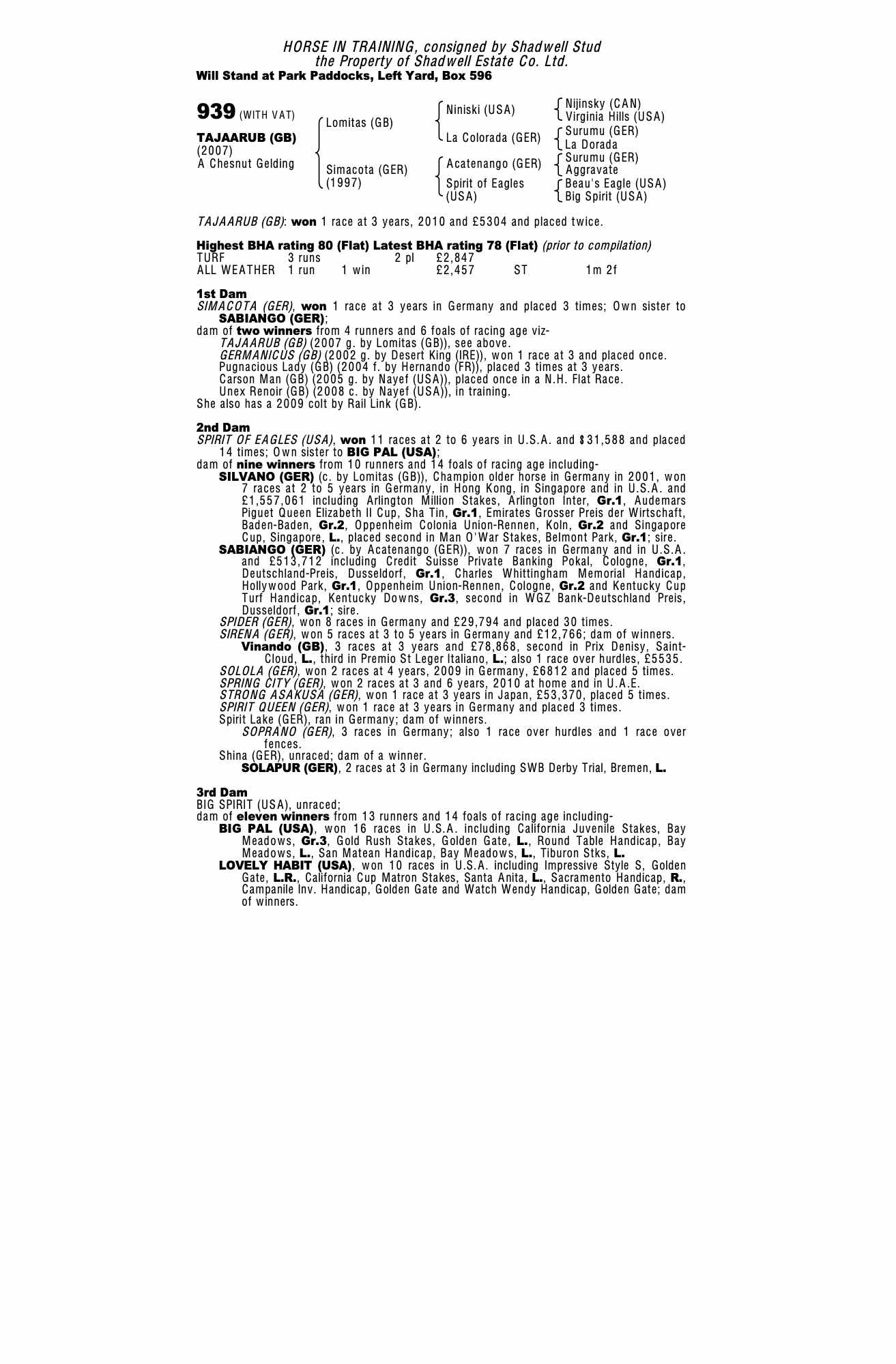 July Sale 2007 lot 72 Pugnacious Lady (GB) (F. by Hernando (FR)), Voute Sales Ltd. (Agent)=>Vendor 9,000 gns