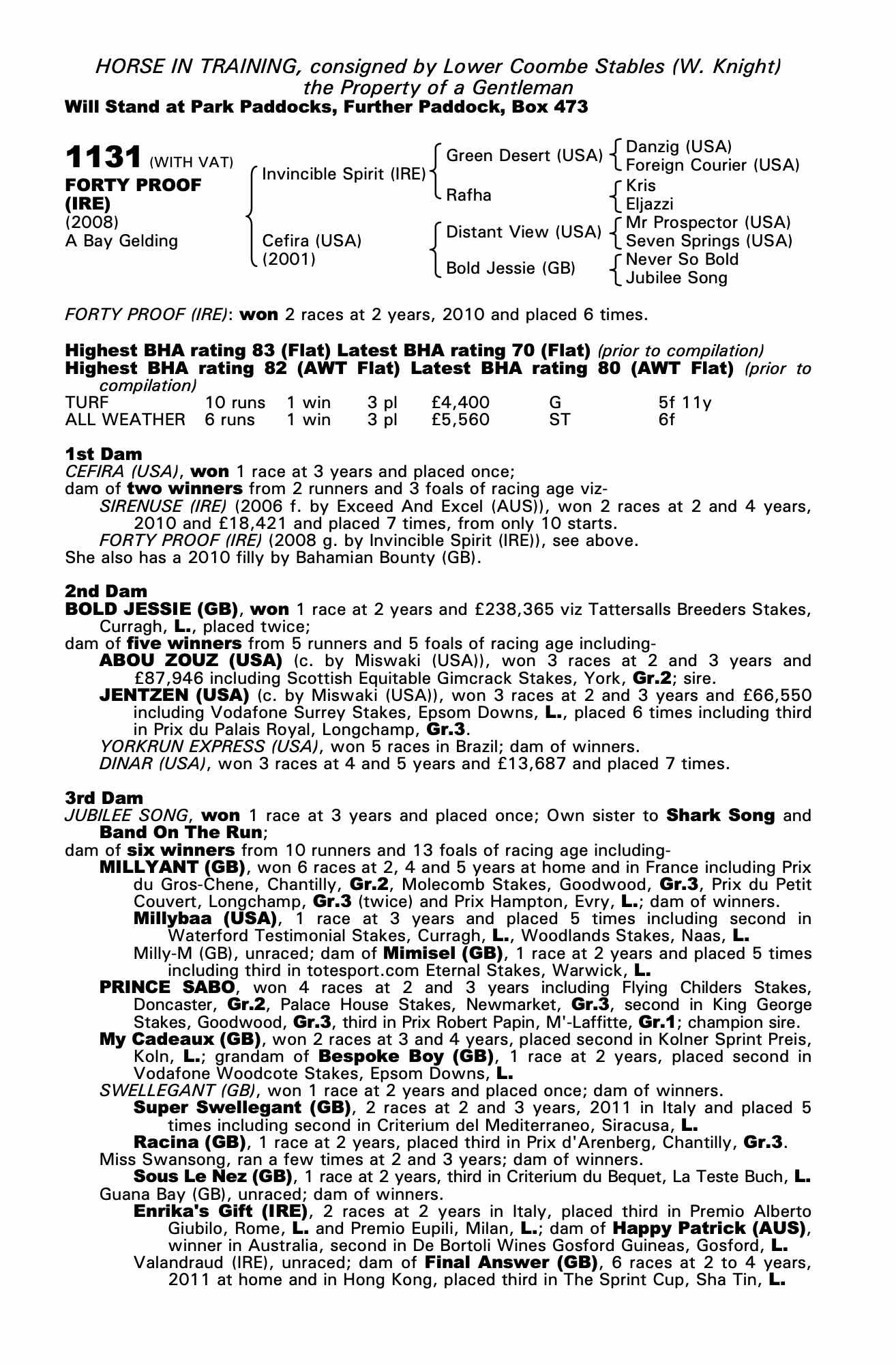 October Yearling Sale, Book 2 2011 lot 518 F. by Bahamian Bounty (GB) 2010, Westerlands Stud=>C De Moubray 30,000 gns