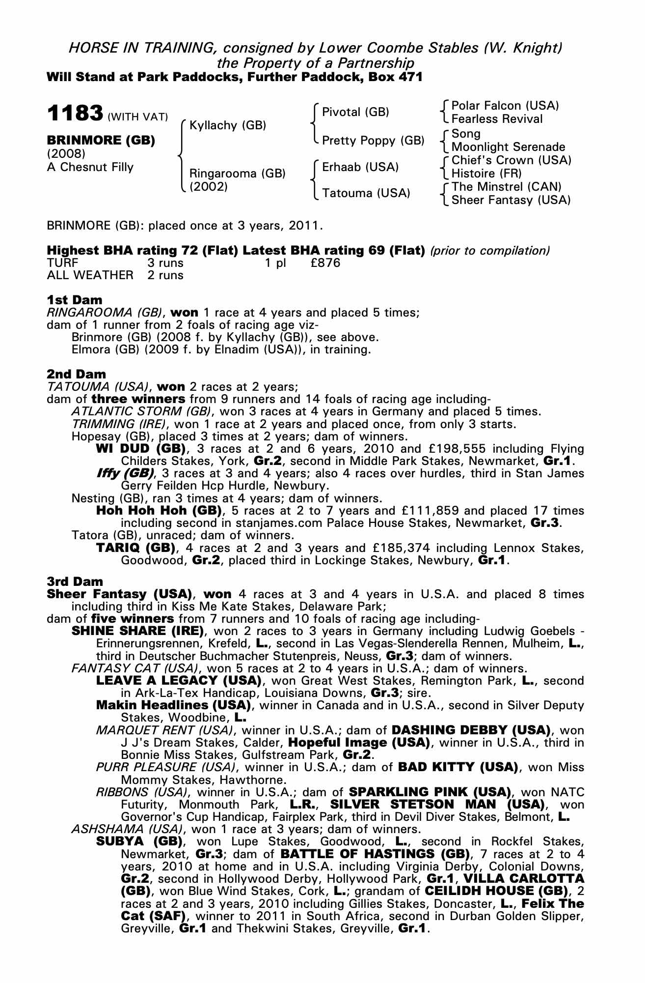 Consignor: Lower Coombe Stables (W. Knight)