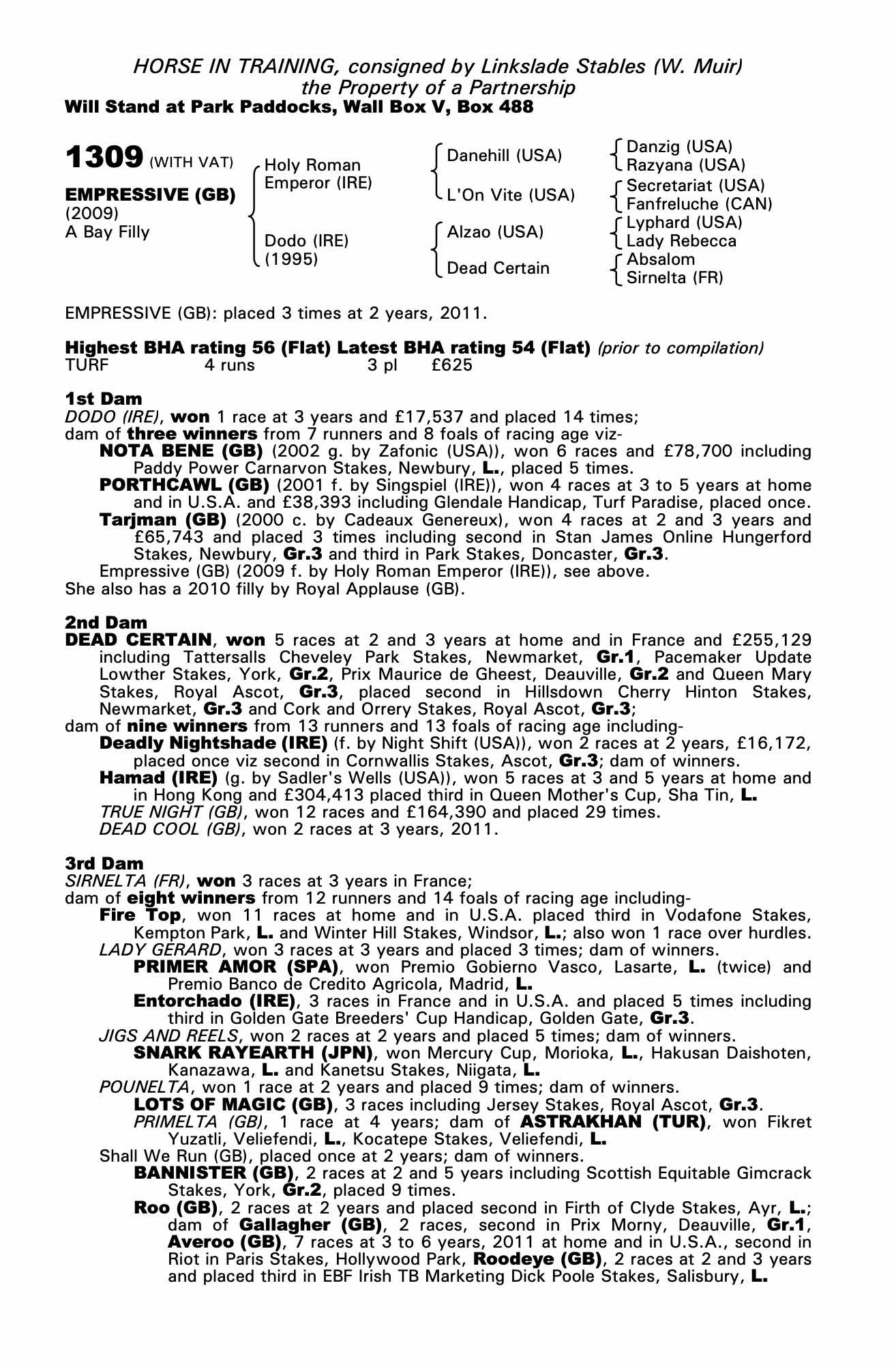Consignor: Linkslade Stables (W. Muir)